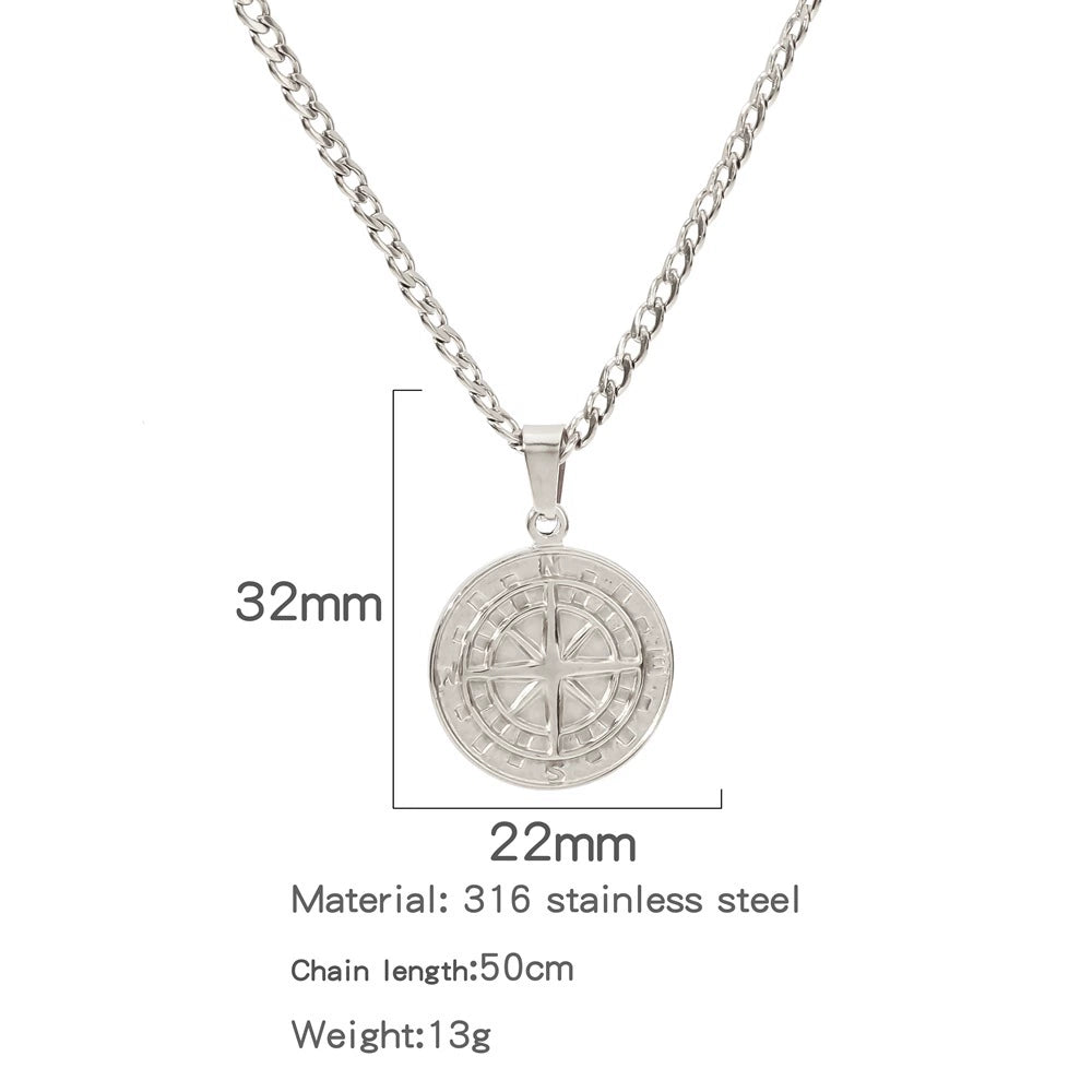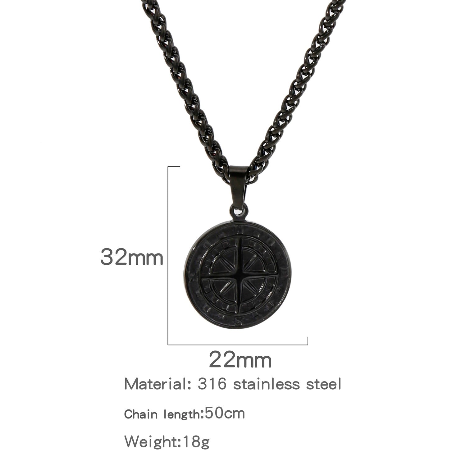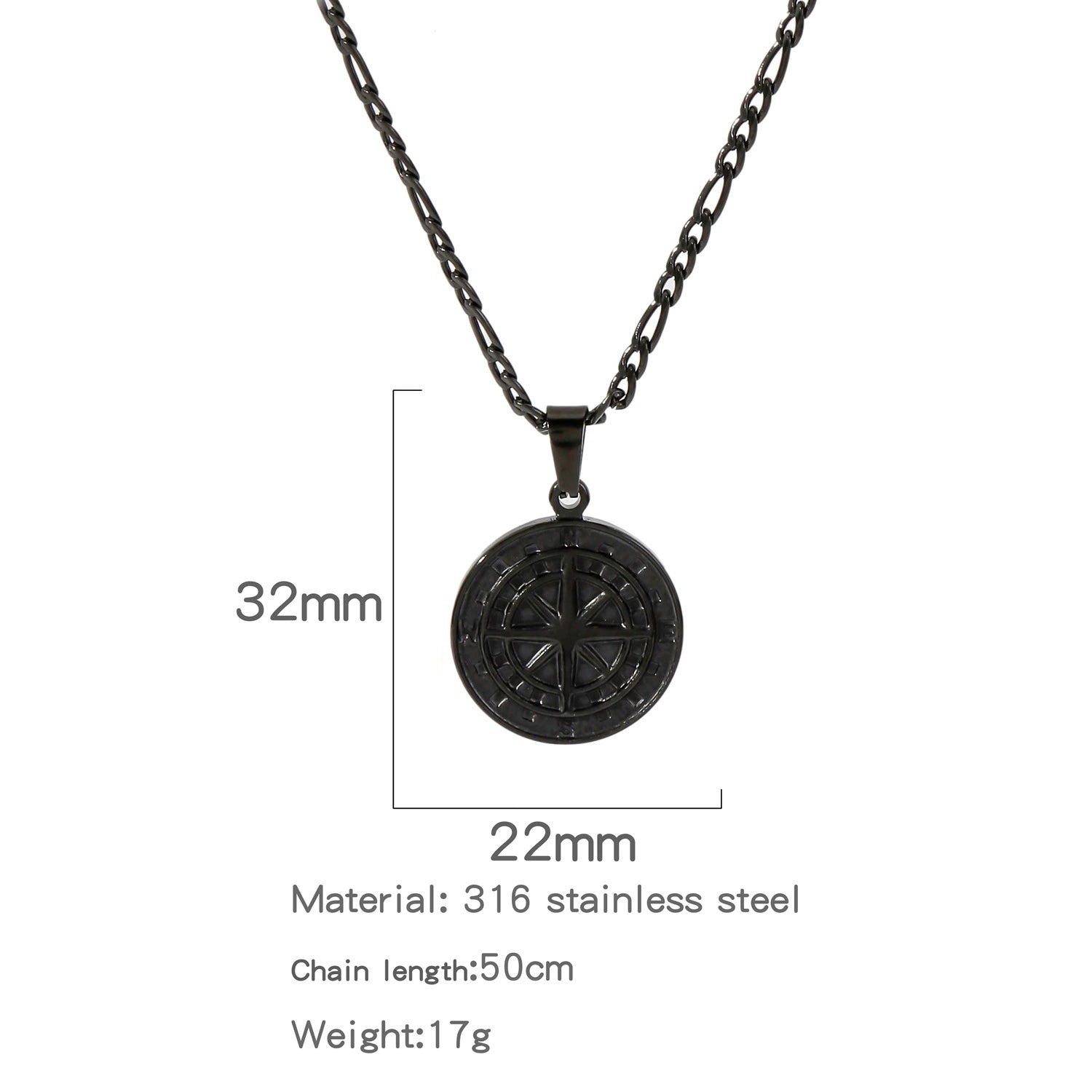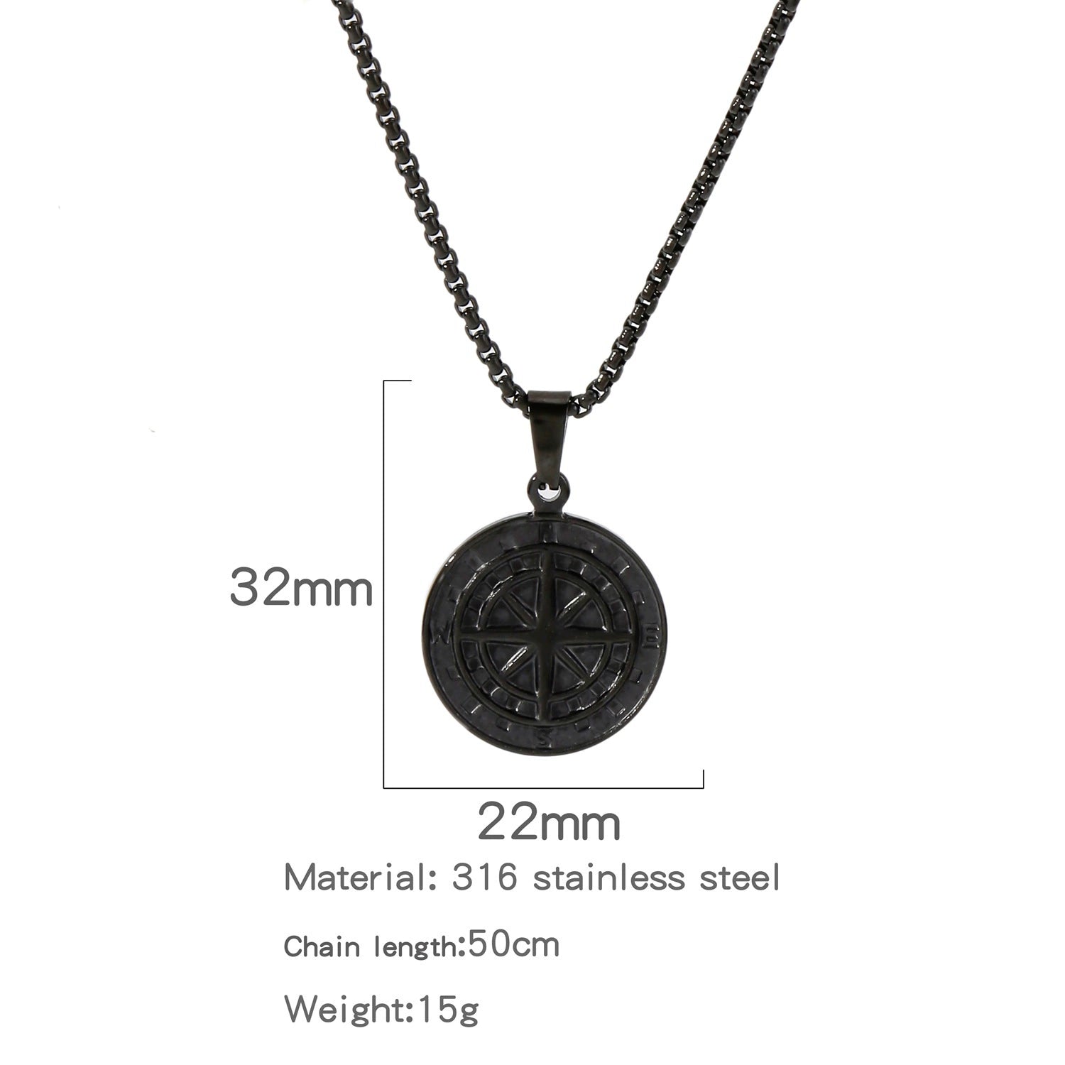 Men's Viking Nordic Style Metallic Compass Pendant Necklace With Ochain And Electroplating