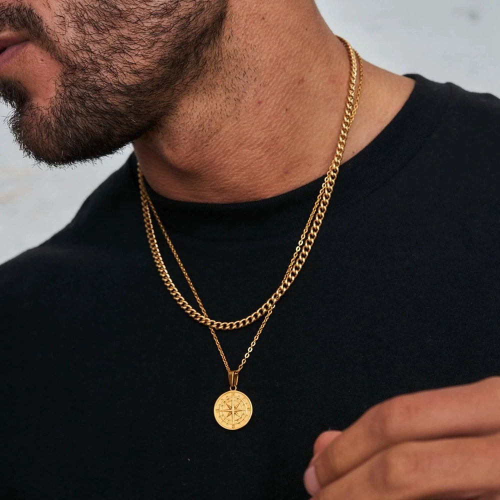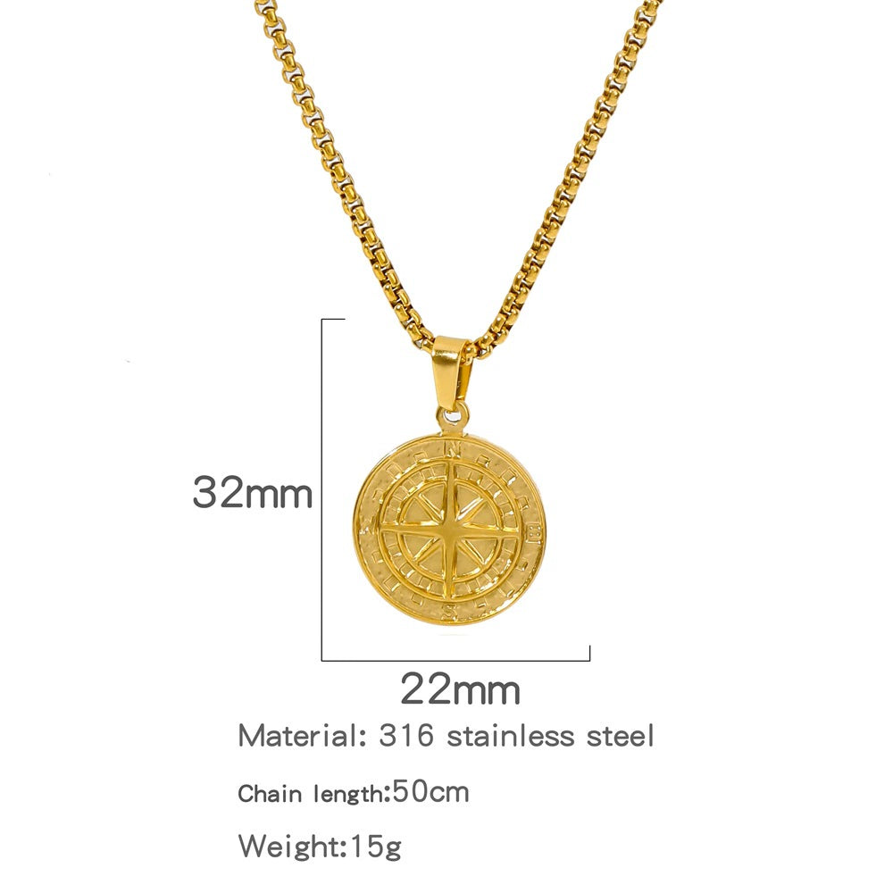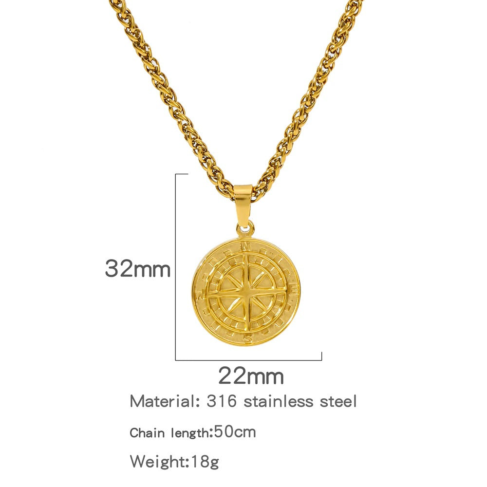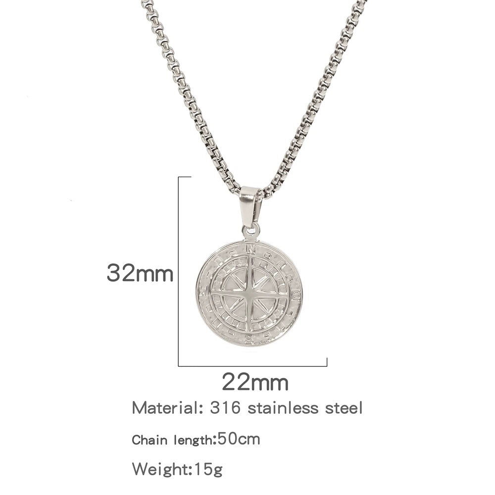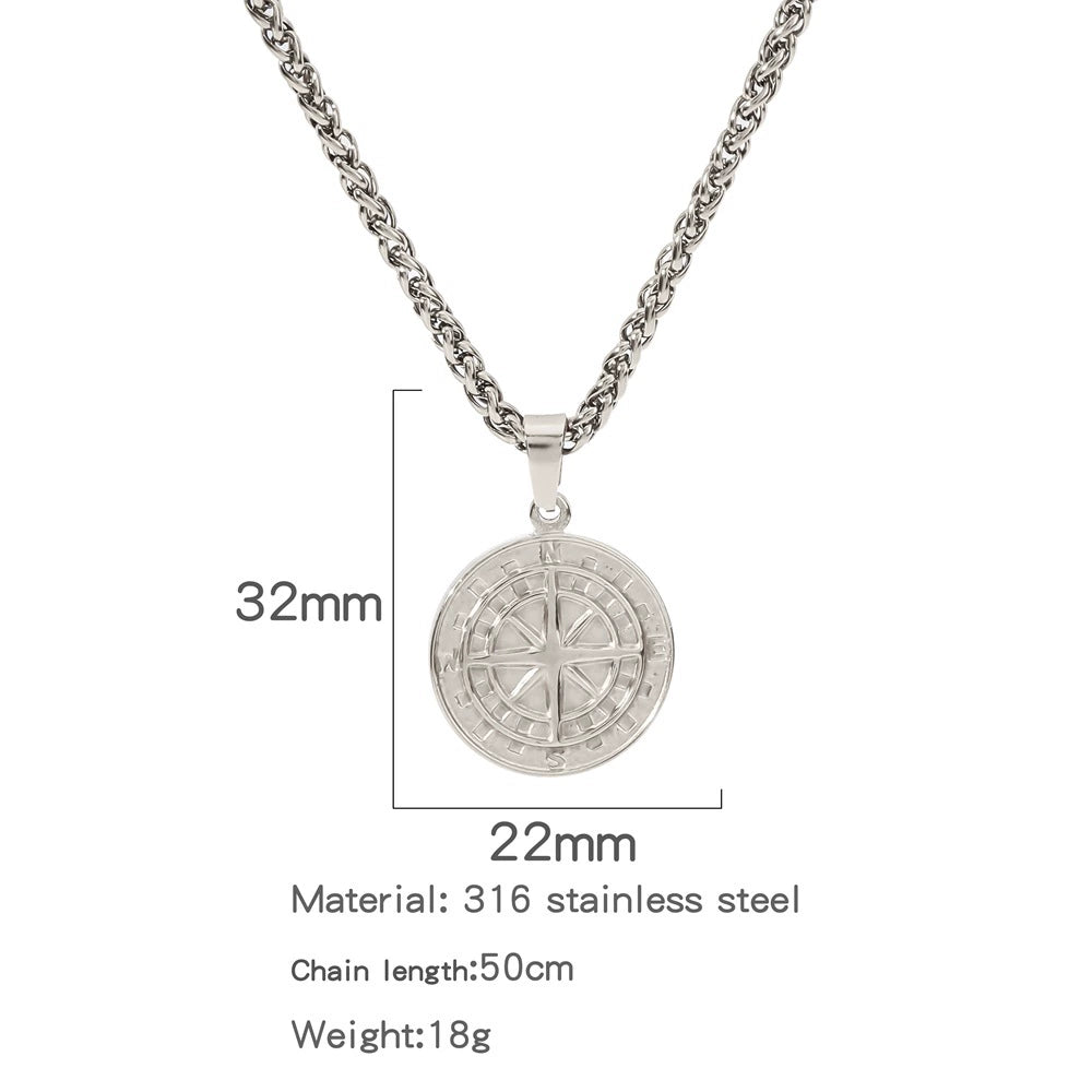 Men's Viking Nordic Style Metallic Compass Pendant Necklace With Ochain And Electroplating