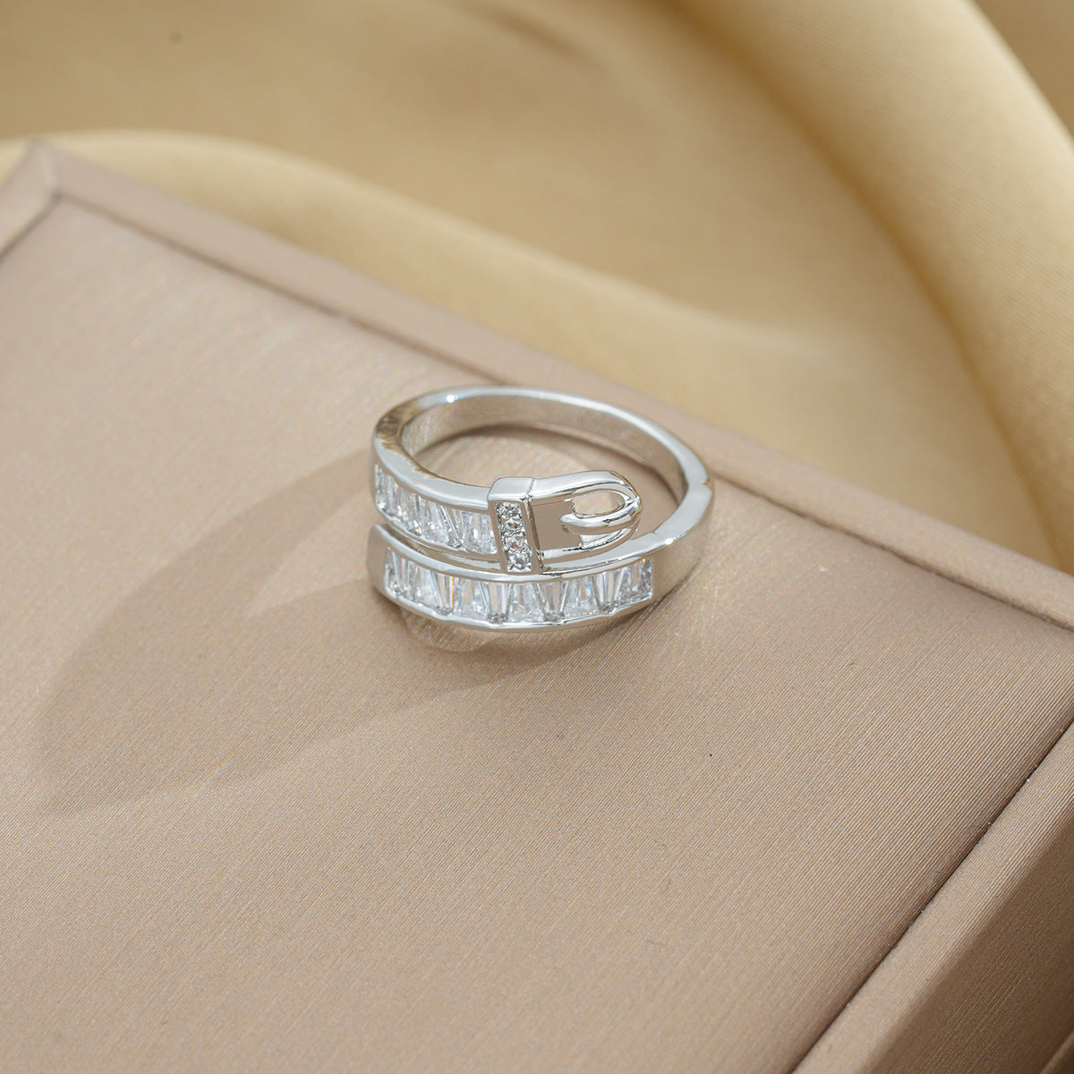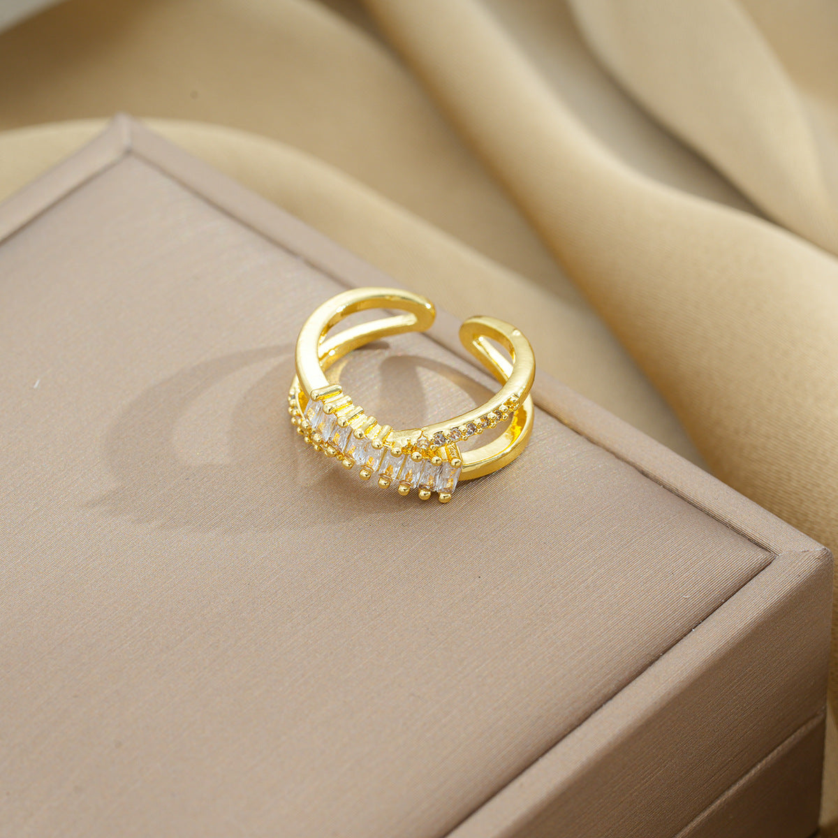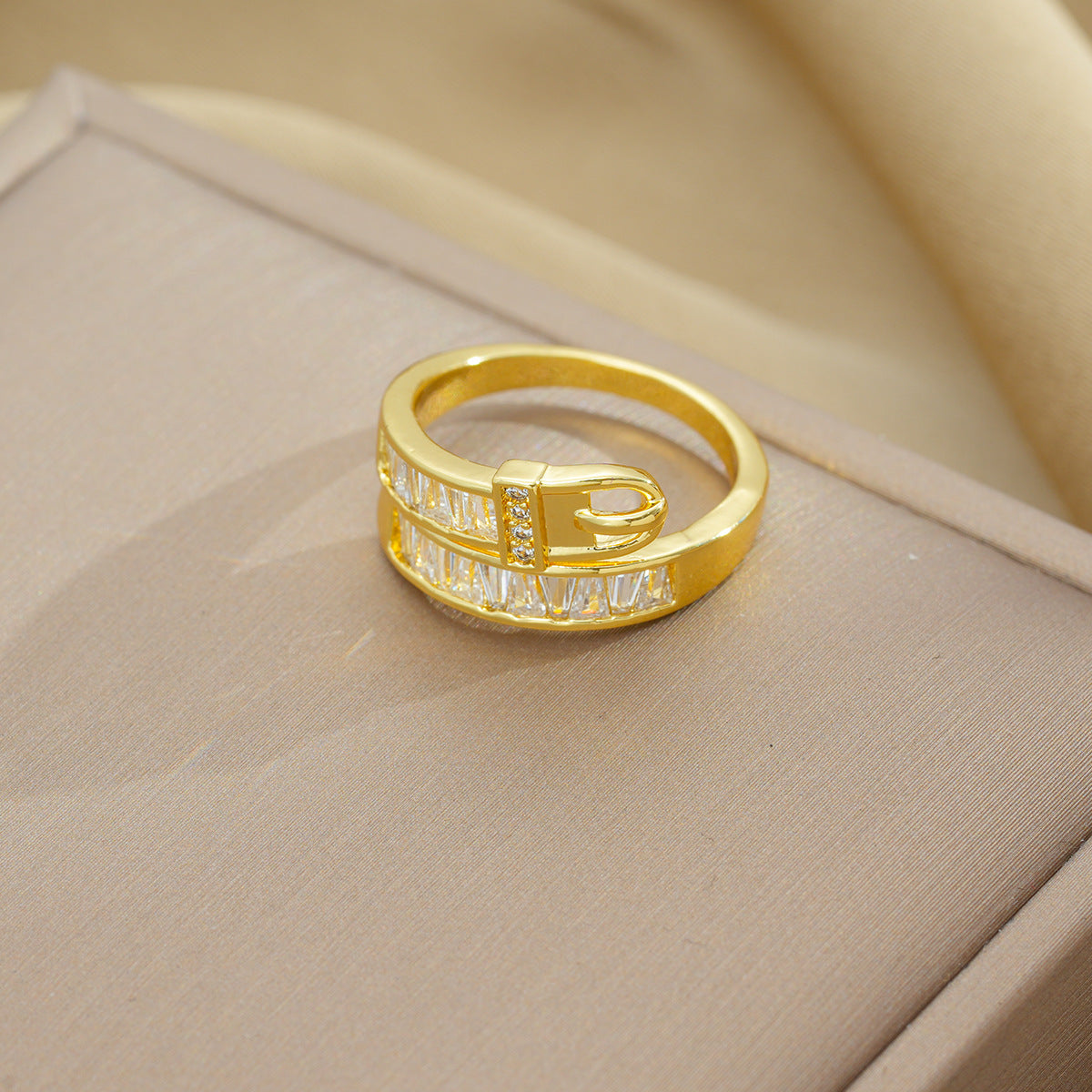 Moderate Luxury Round Geometric Titanium Steel 18K Gold Plated Rings