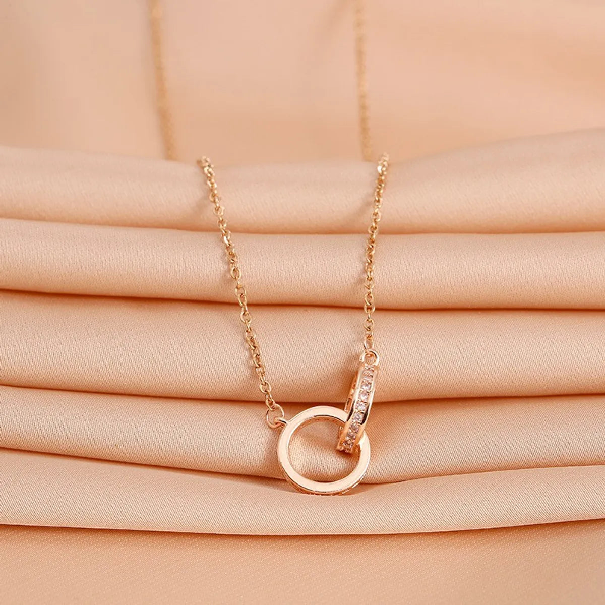 Modern Style Classic Style Round Titanium Steel Copper 18k Gold Plated Zircon Pendant Necklace In Bulk