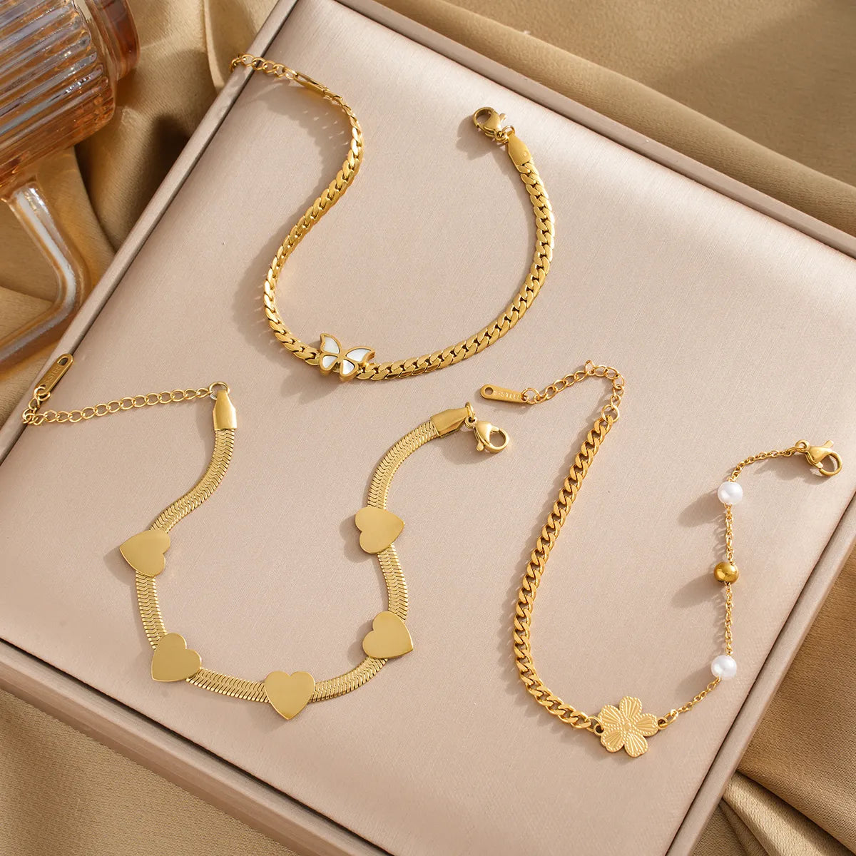 Modern Style Simple Style Heart Shape Flower Butterfly 304 Stainless Steel 18K Gold Plated Bracelets In Bulk