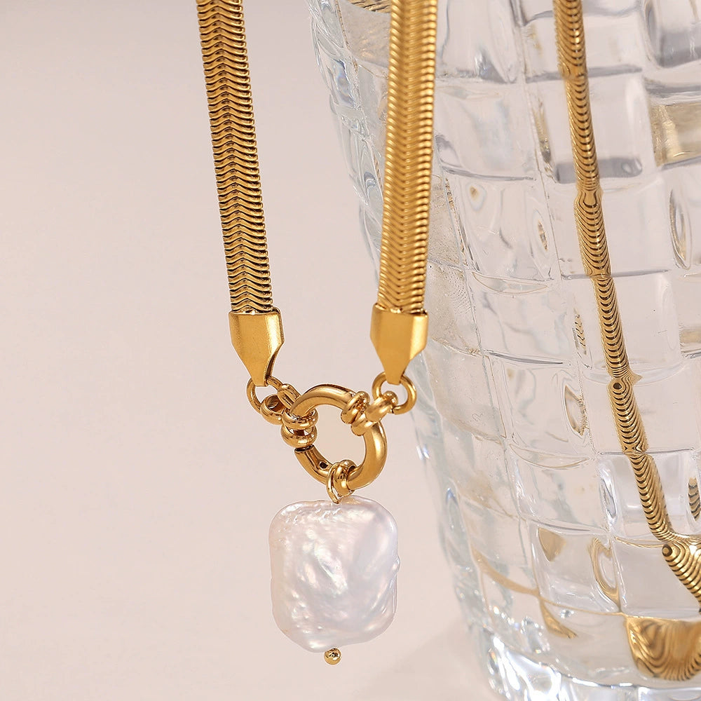 Necklace Freshwater Shell 316L Stainless Steel Electroplating Fashion Irregular Snake Bone Chain Jewelry For Women