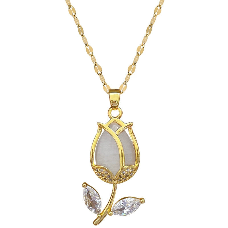 Necklace Stainless Steel Geometric Leaf Tulip Pendant For Women