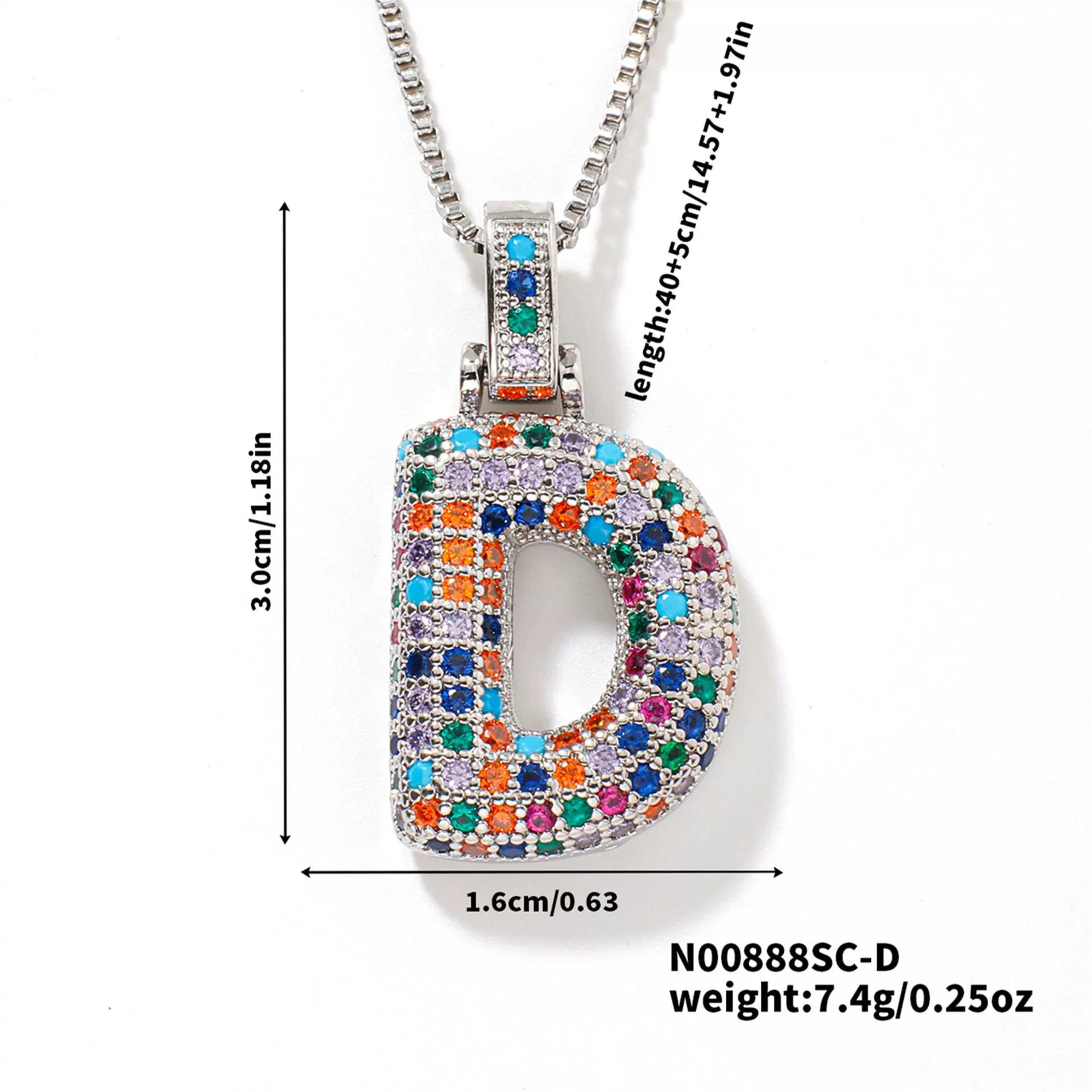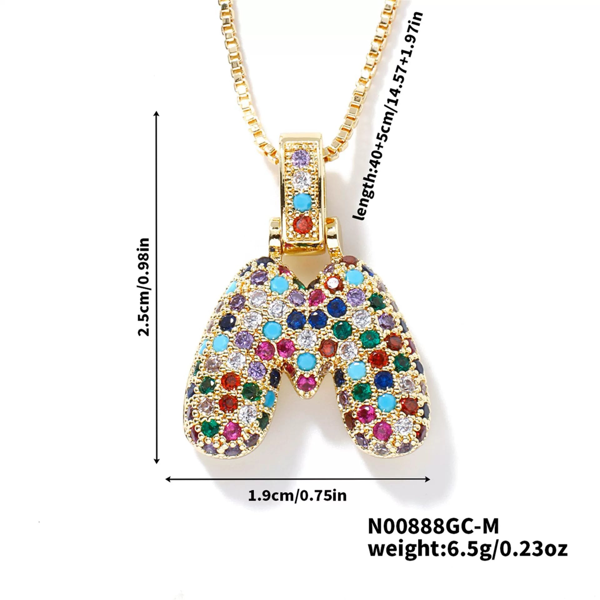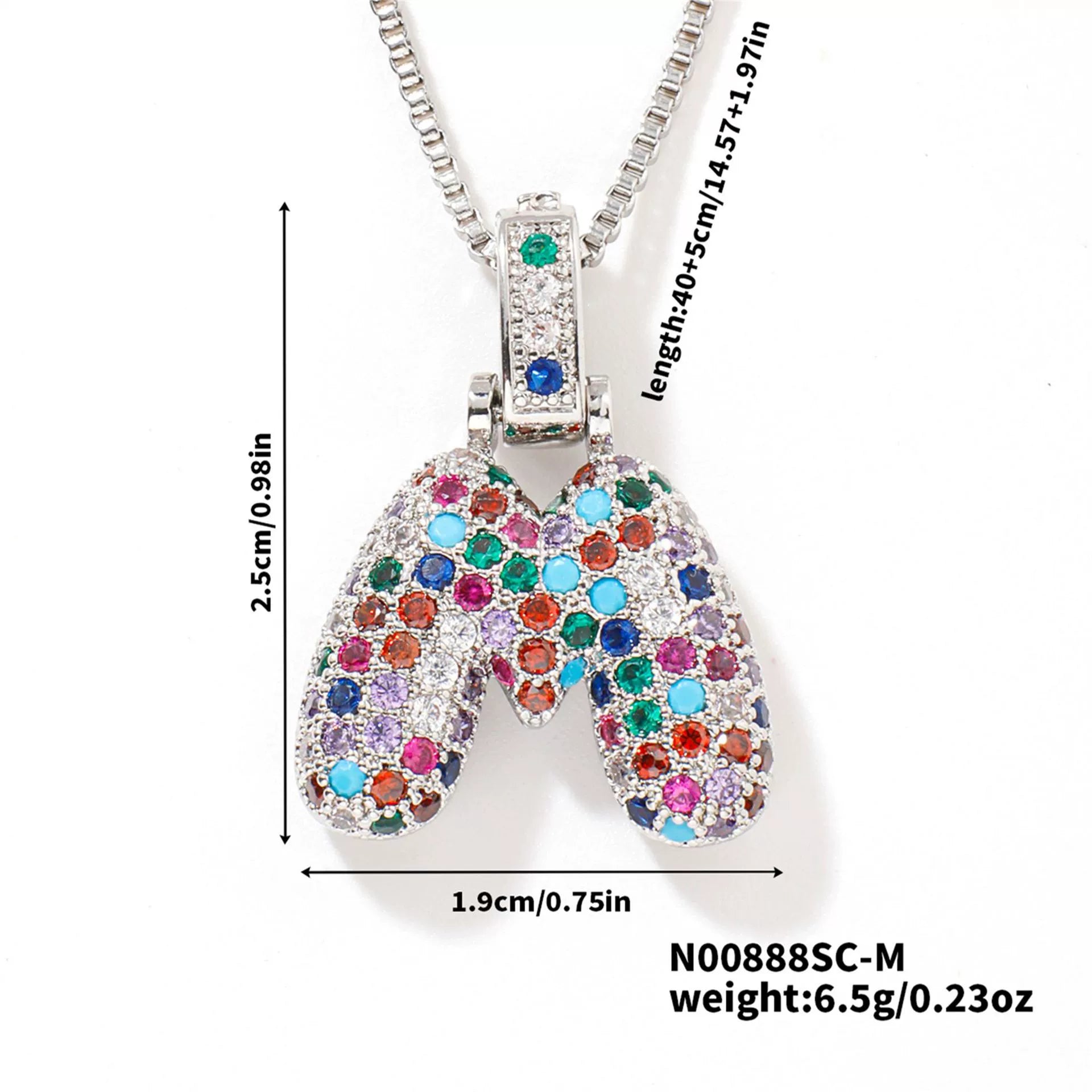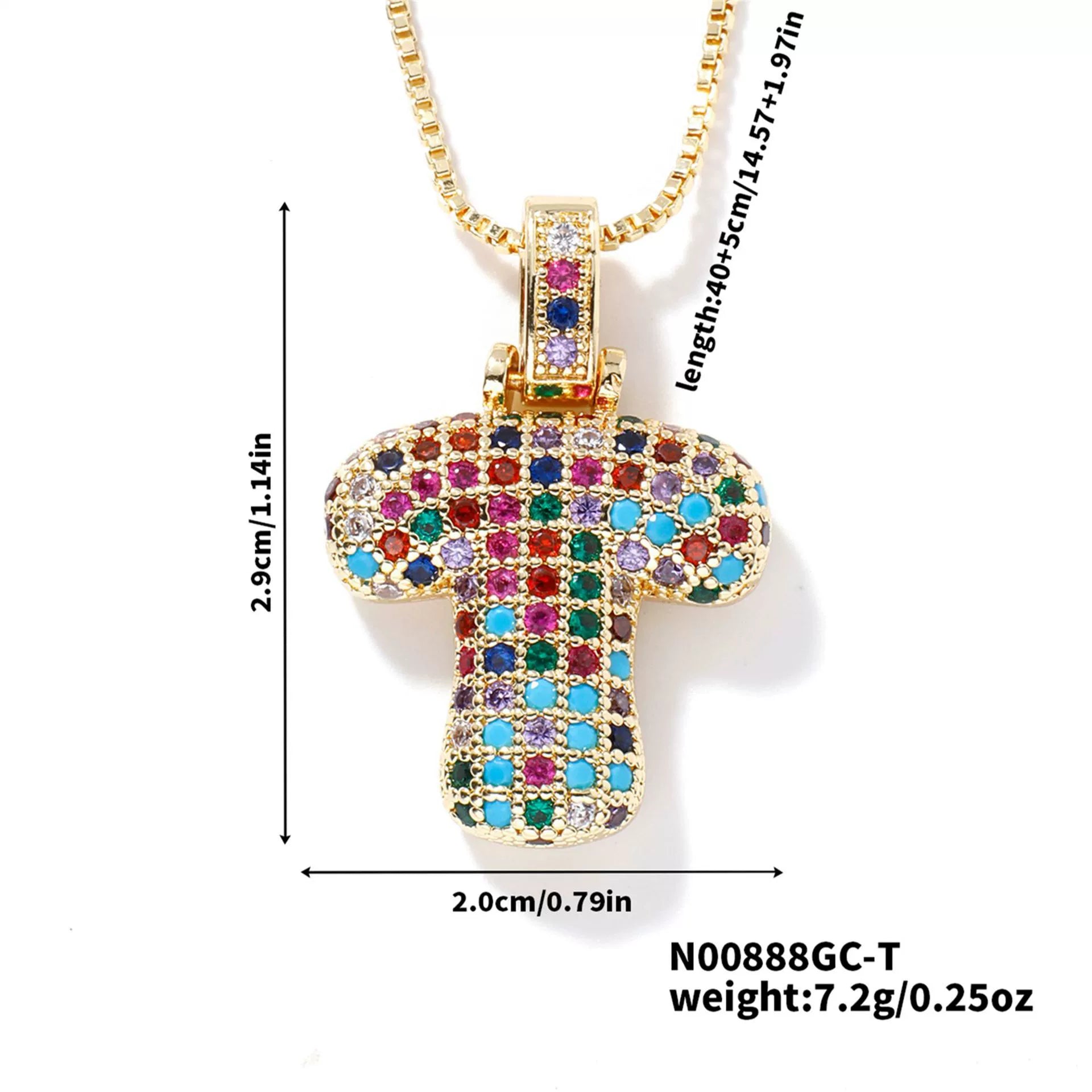Pendant Clavicle Chain Copper Inlaid Zircon Hip Hop Style With Letter Pattern Electroplated