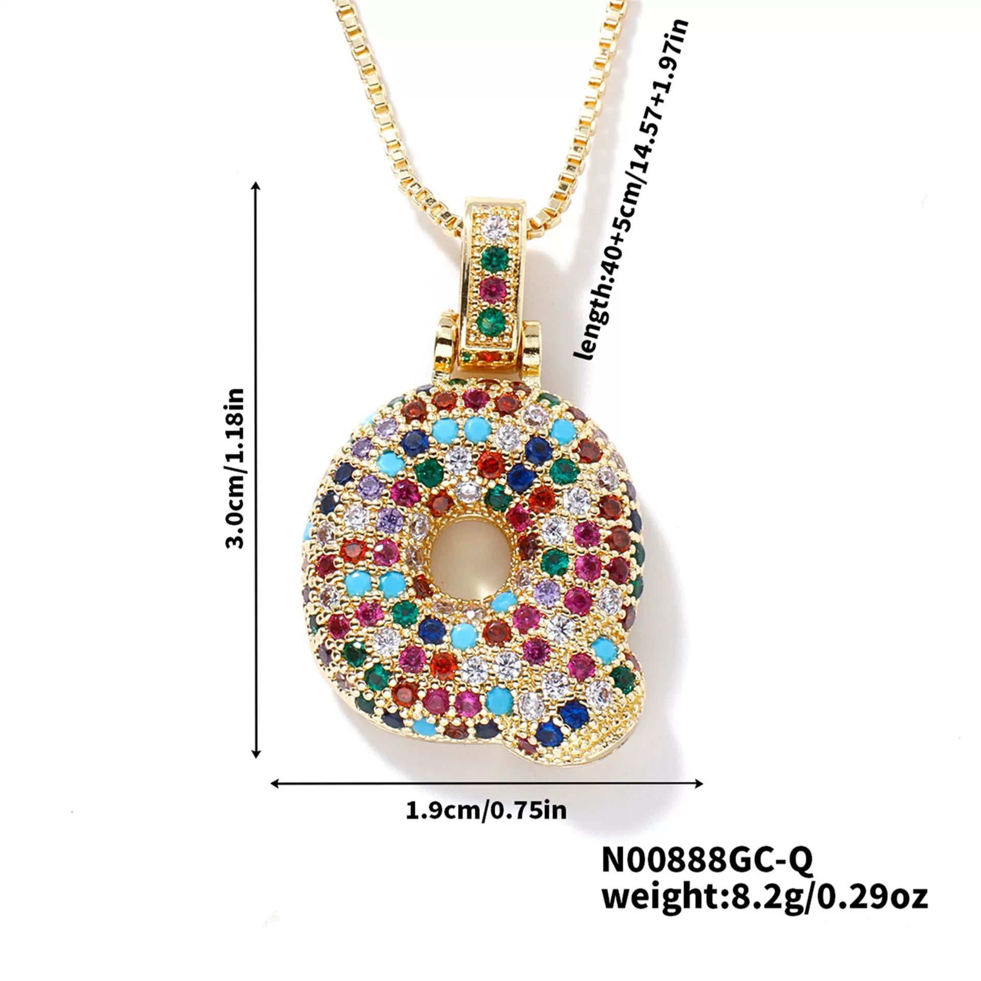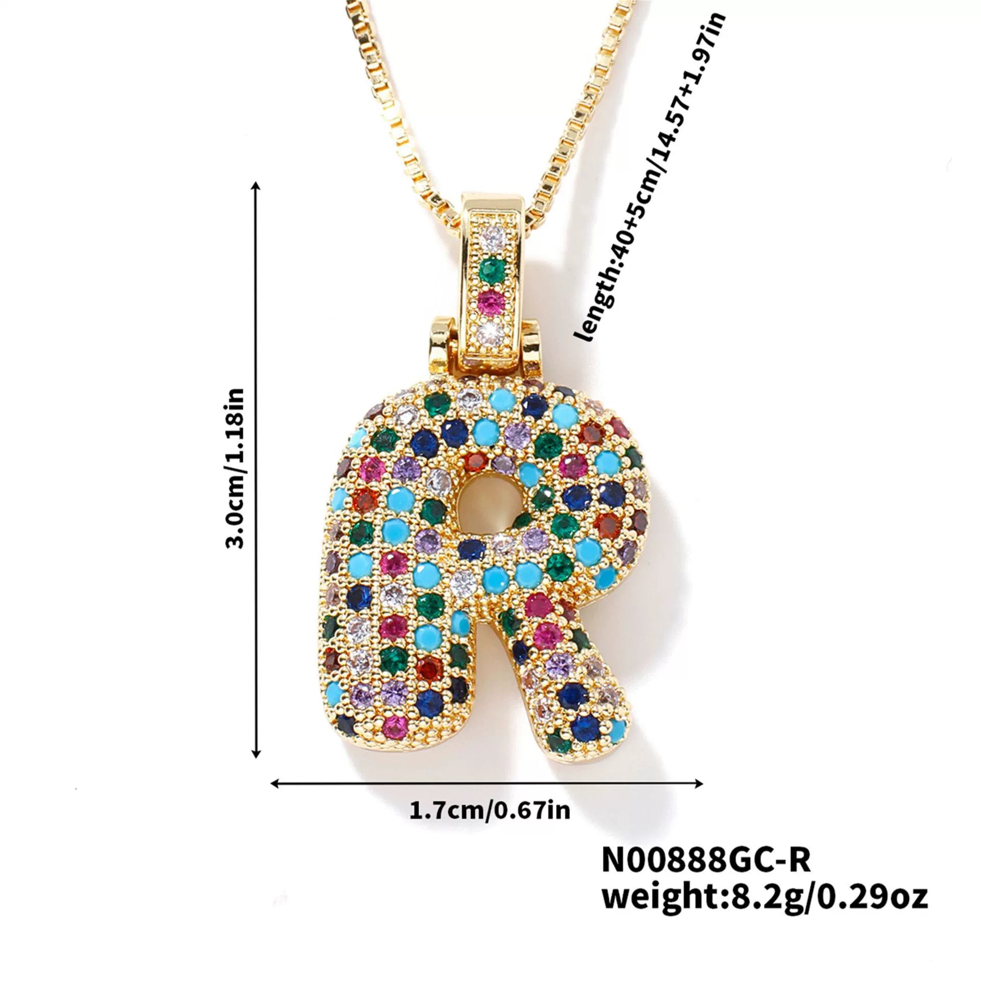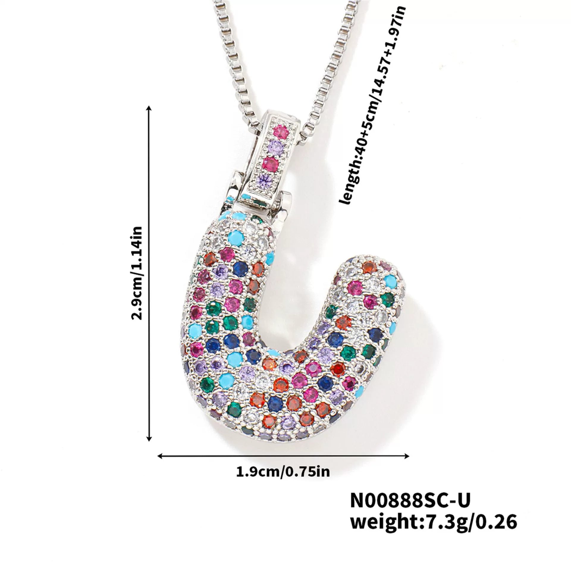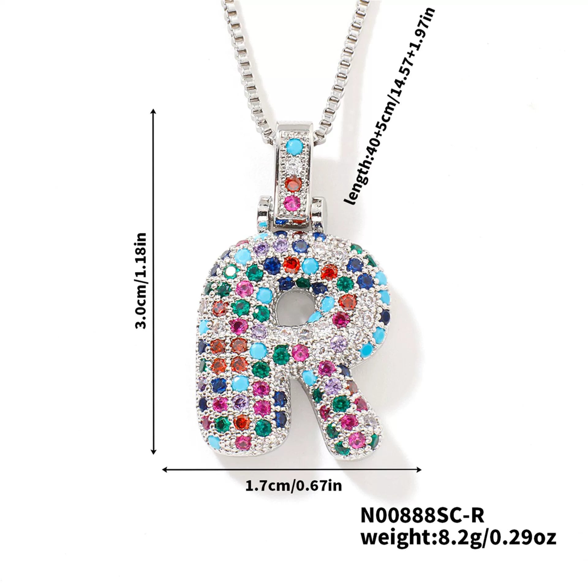Pendant Clavicle Chain Copper Inlaid Zircon Hip Hop Style With Letter Pattern Electroplated