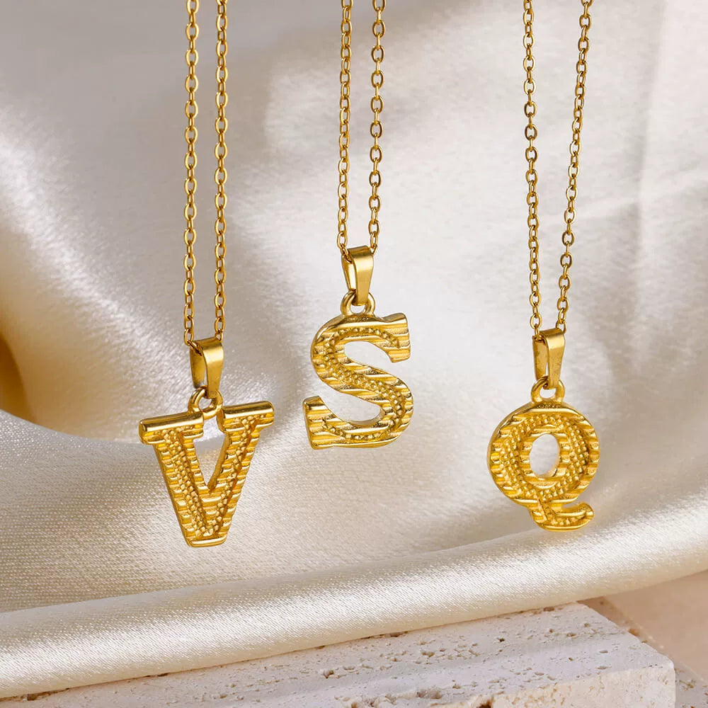 Pendant Necklace Stainless Steel Gold Plated With Letter Pattern