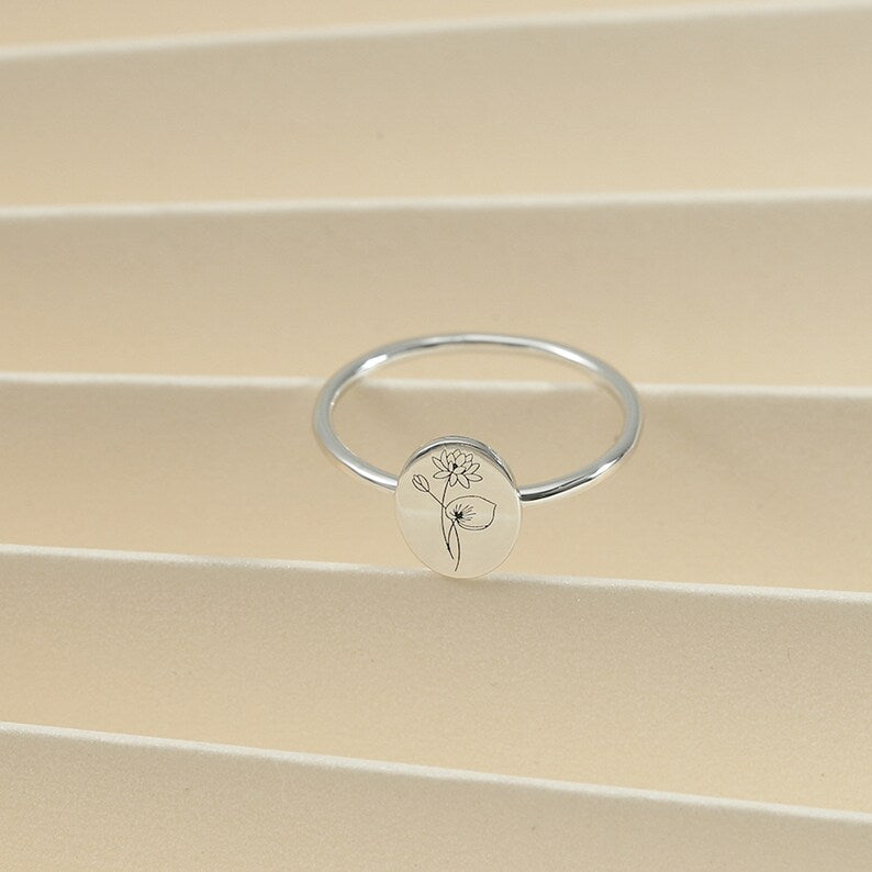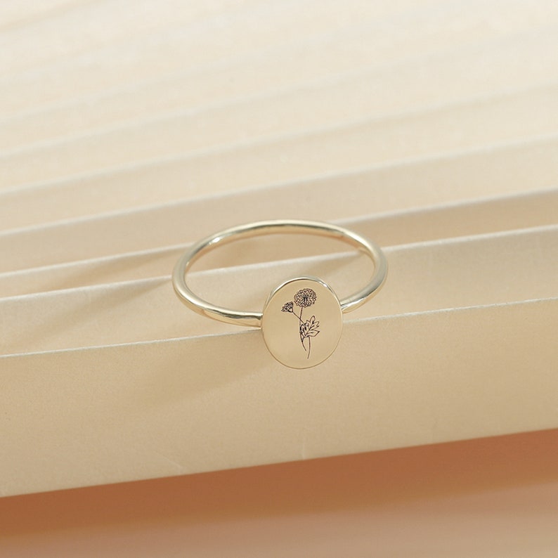 Personalized Birth Flower Ring, Floral Signet Ring, Christmas Gift for Her, Jewelry Gift for Women, Minimalist Birth Month Flower Ring