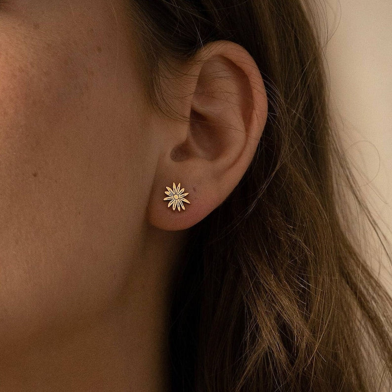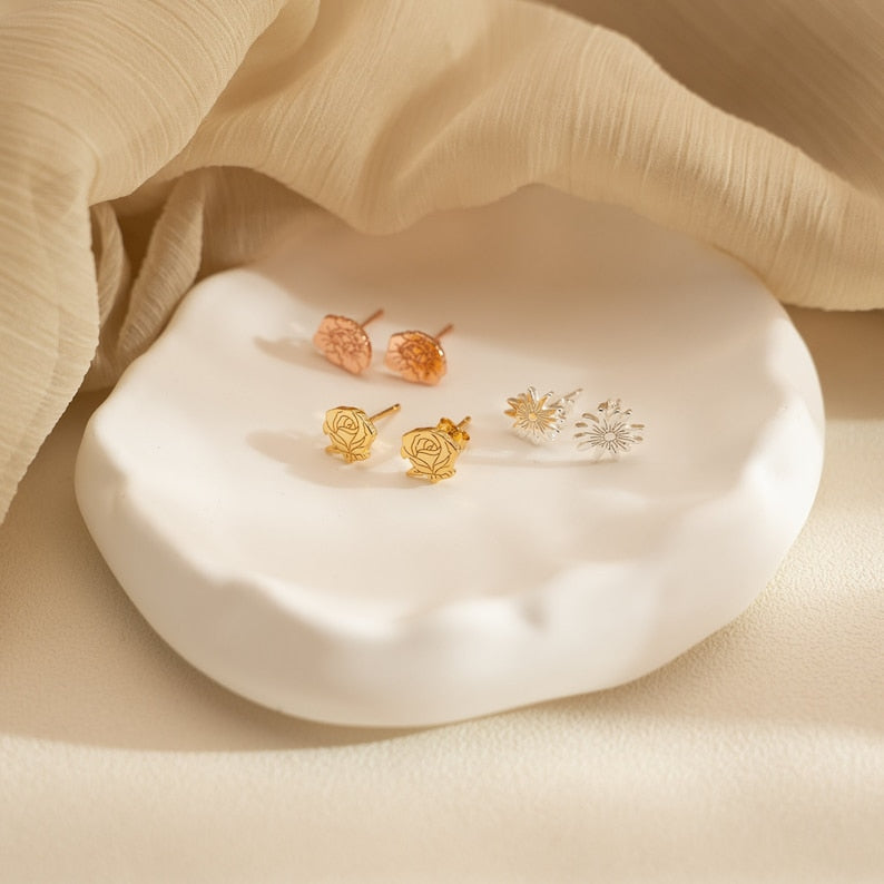 Personalized Birth Flower Stud Earrings, Rose Gold Flower Earrings, Blooming Birth Flower Earring in 18K Gold, Birthday Gift for Mother Her