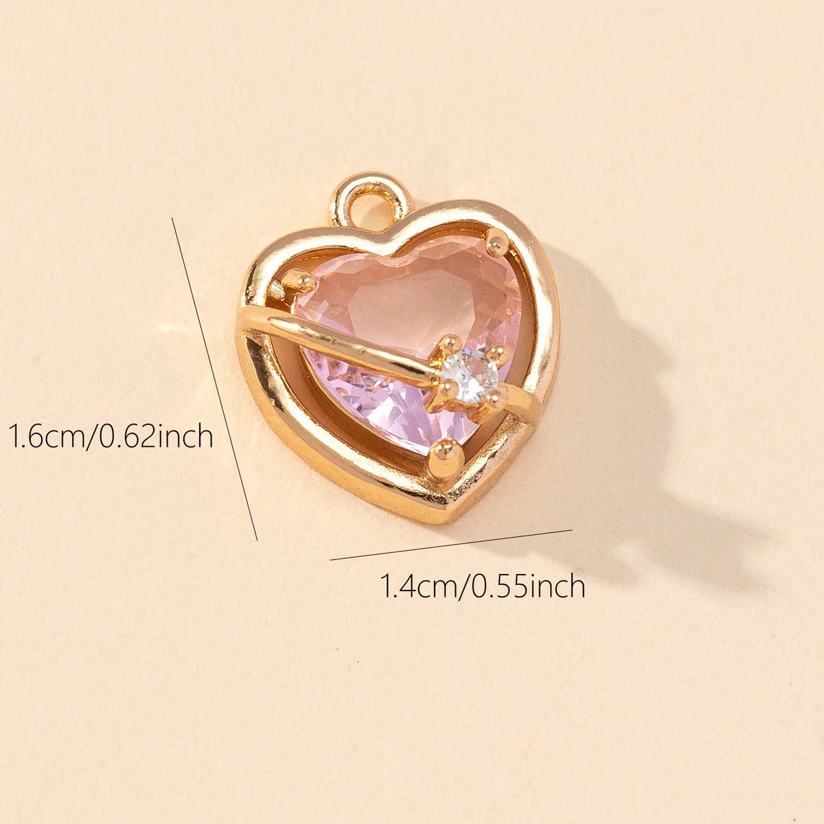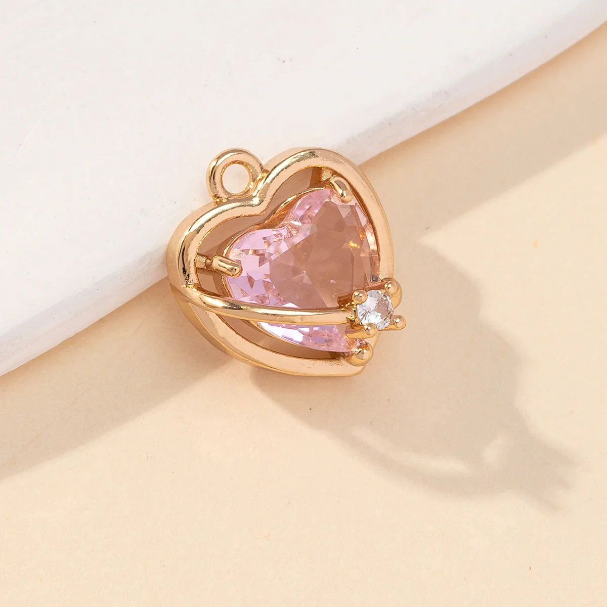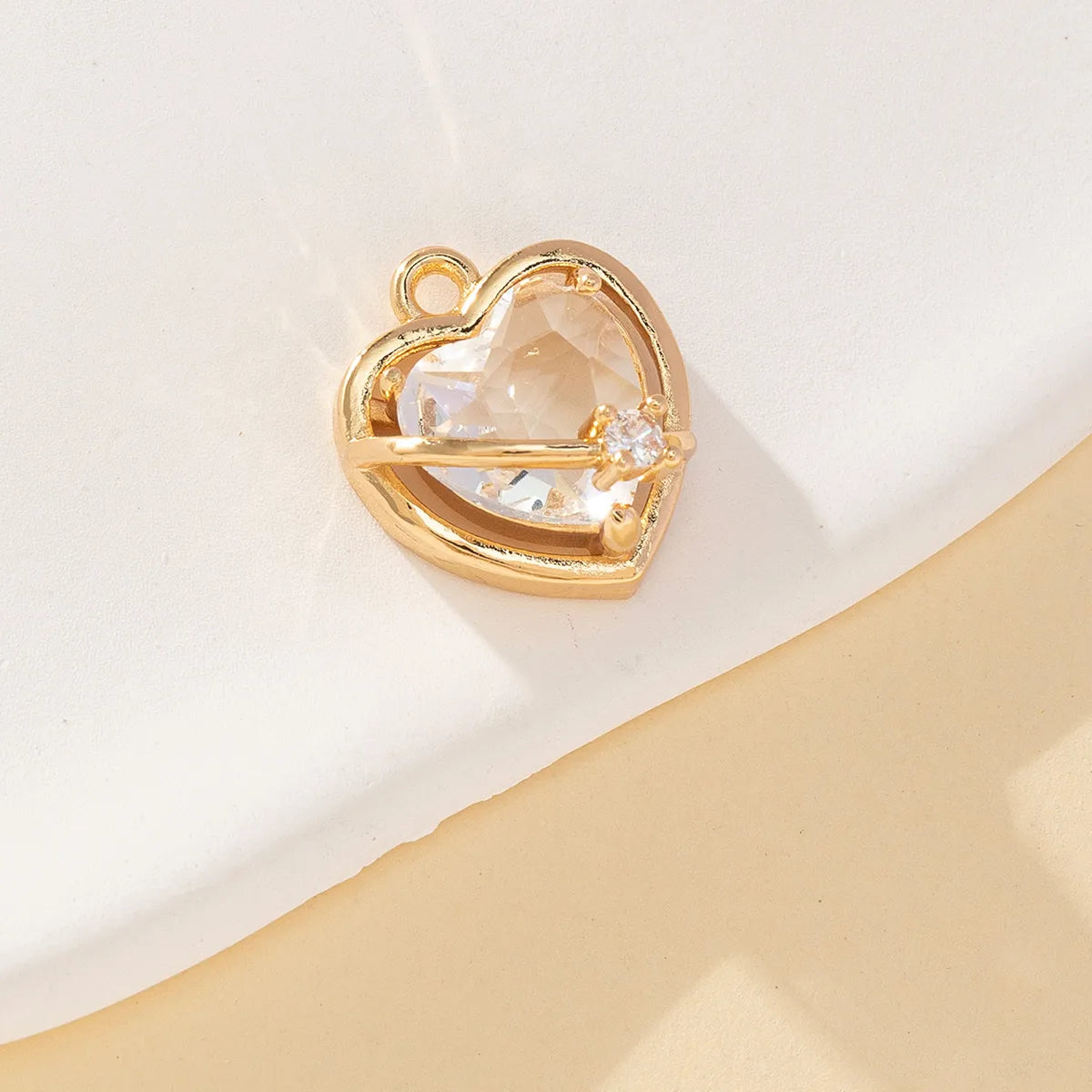 Princess Luxurious Shiny Heart Shape Glass Stone Alloy Wholesale Charms
