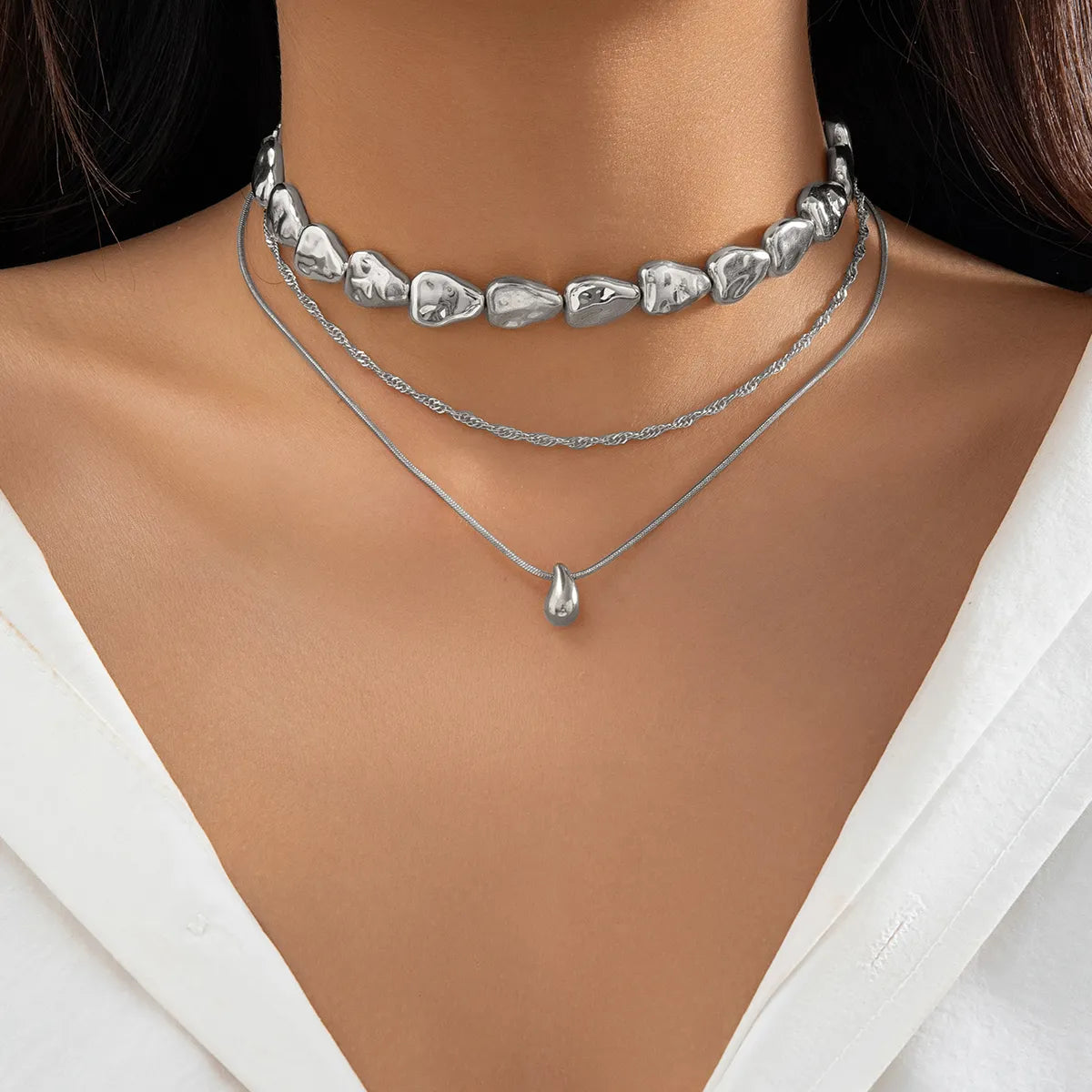 Punk Simple Style Geometric Water Droplets Alloy Copper Wholesale Pendant Necklace Choker