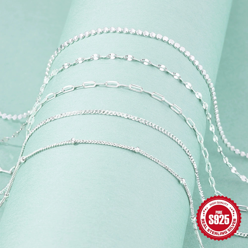 Simple Daily Wear S925 Sterling Silver Paper Clip Chain Unisex Diy Bracelet With Geometric Design And Electroplating