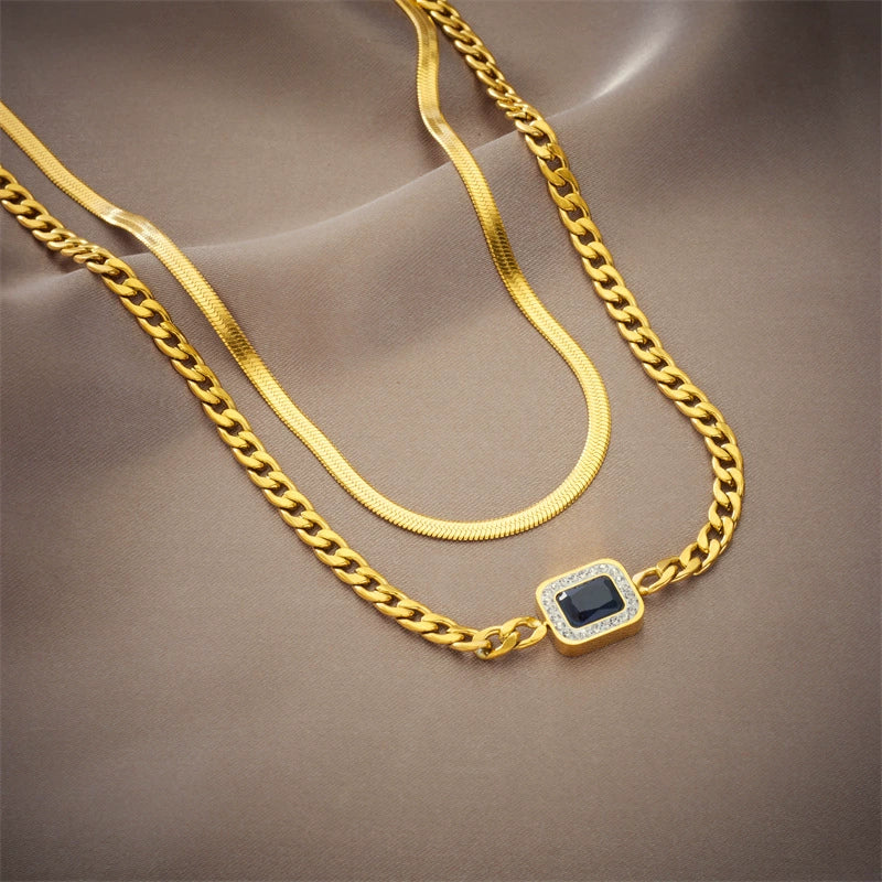 Simple Retro Punk Hiphop Heavy Metal Square Titanium Steel Chain Necklace With Geometric Pattern Electroplating For Women