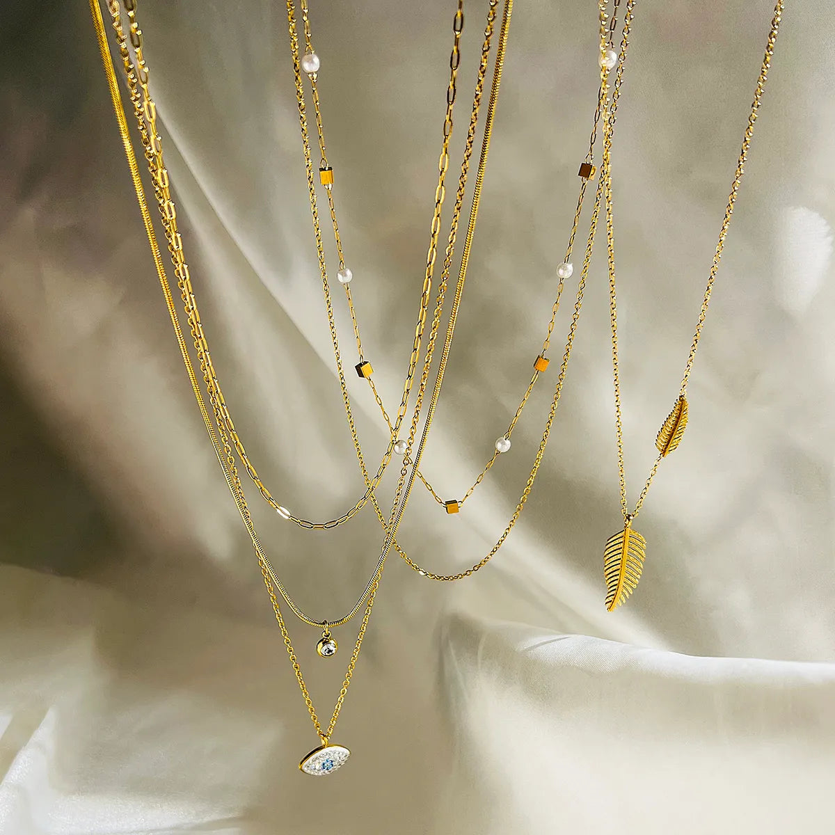 Simple Style Commute Leaves Eye Titanium Steel Plating Inlay Zircon 18k Gold Plated Pendant Necklace