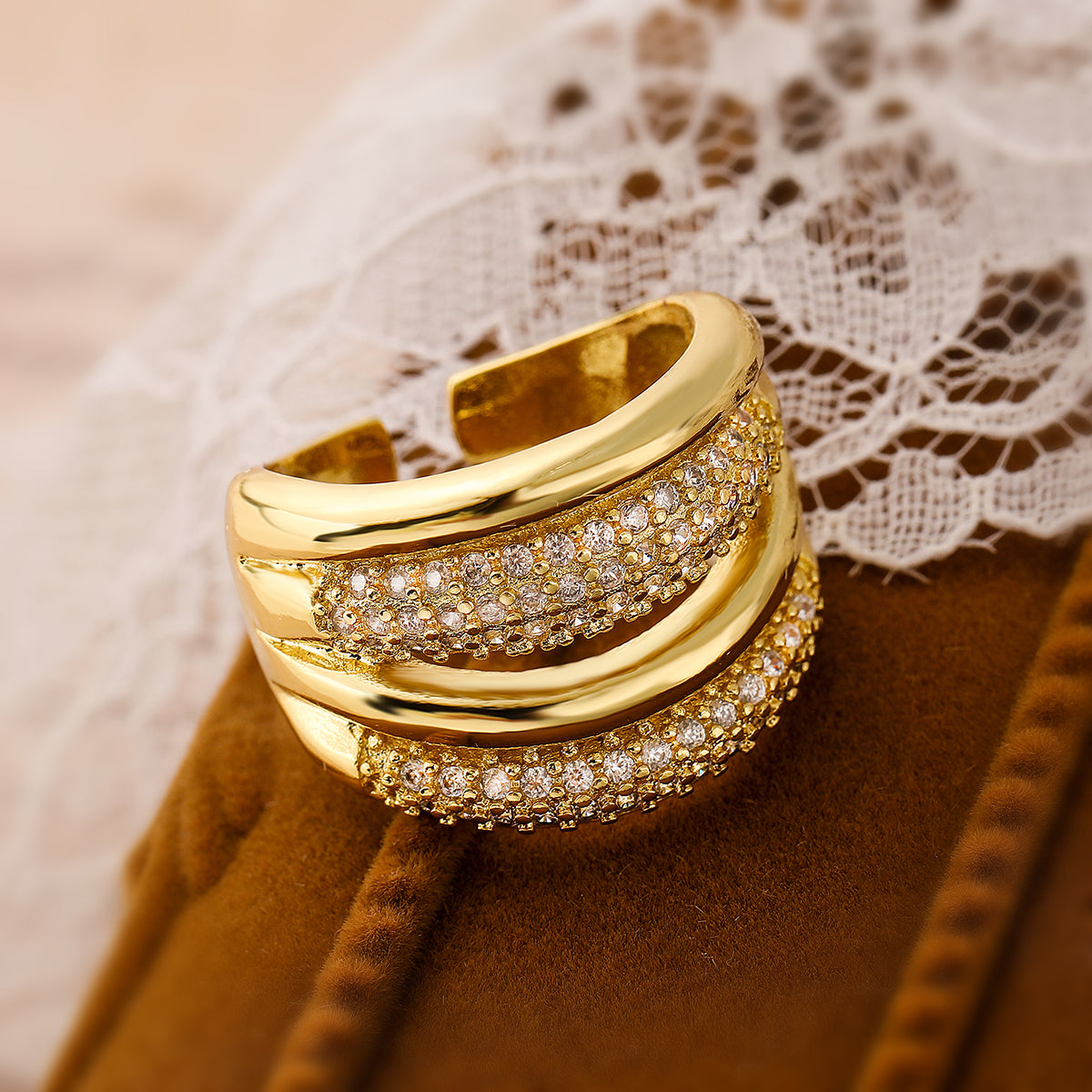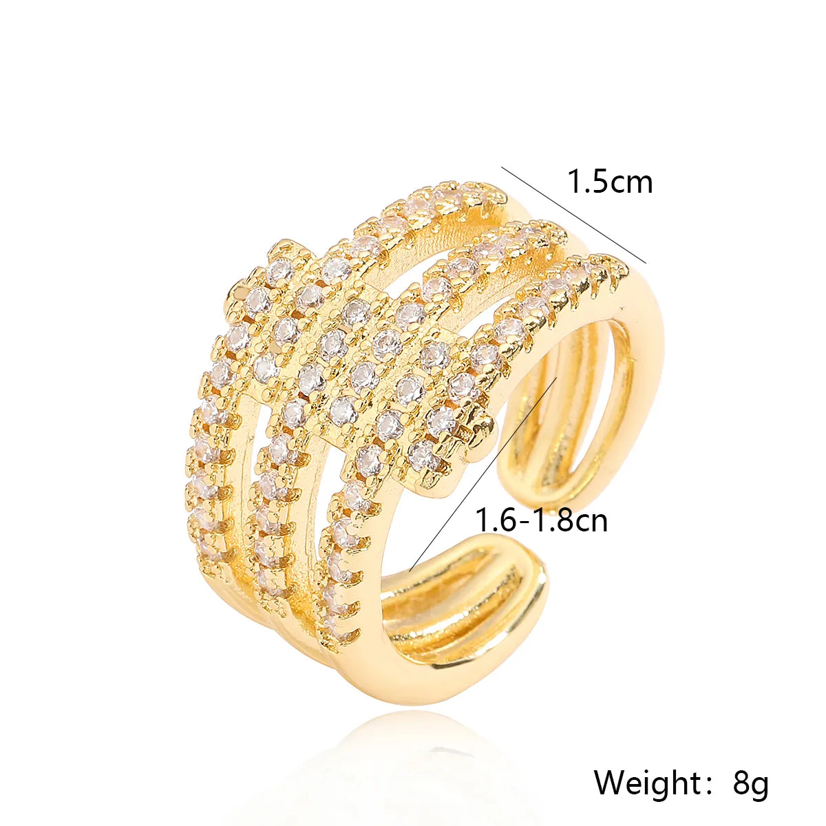 Simple Style Geometric Copper Plating Inlay Zircon 18k Gold Plated Open Rings
