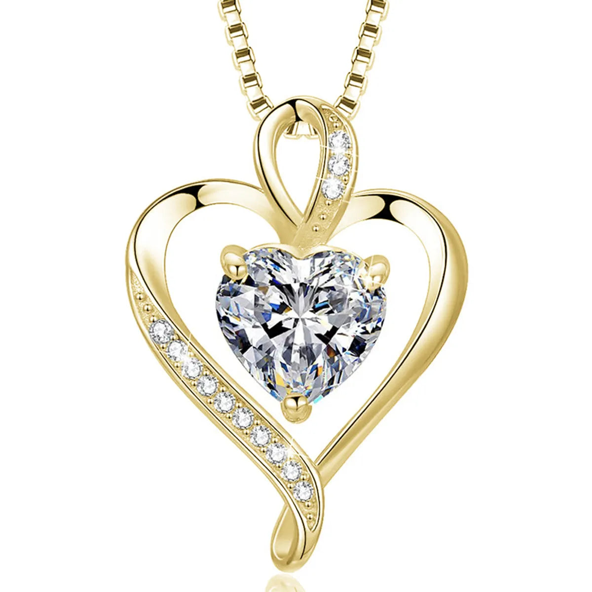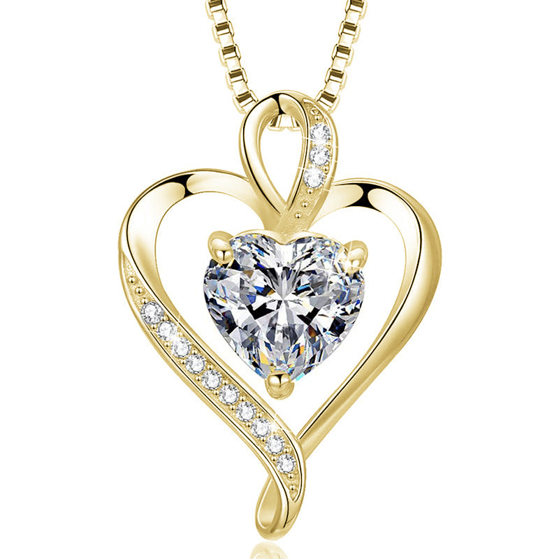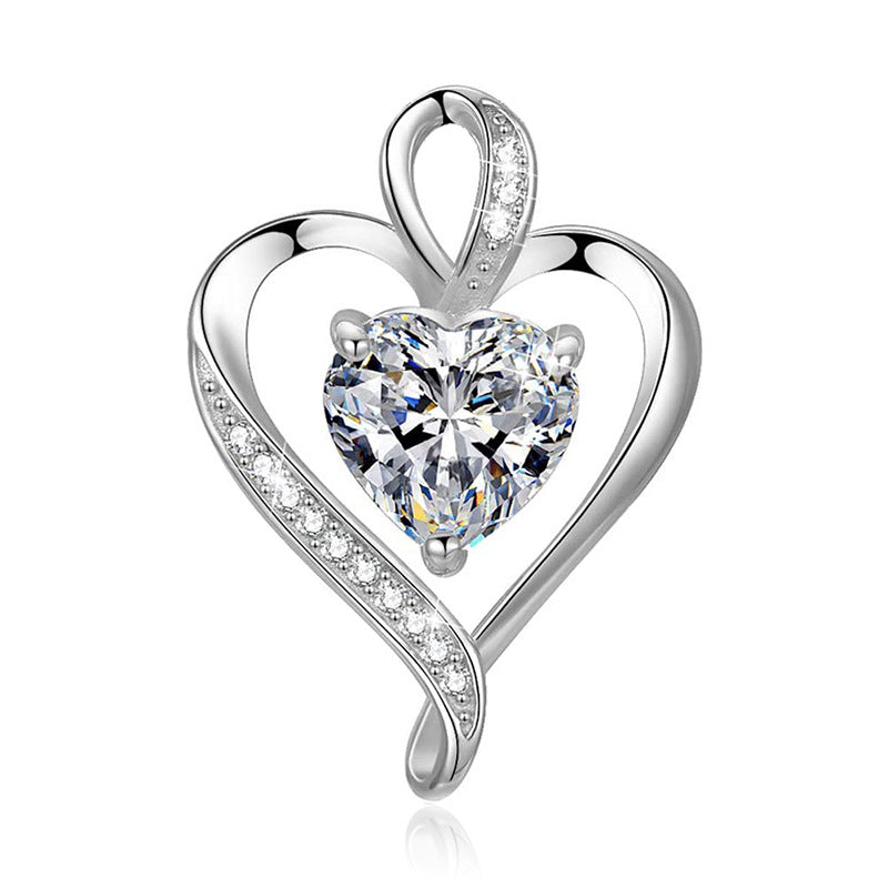 Simple Style Heart Shape Sterling Silver Inlay Zircon Charms Pendant Necklace