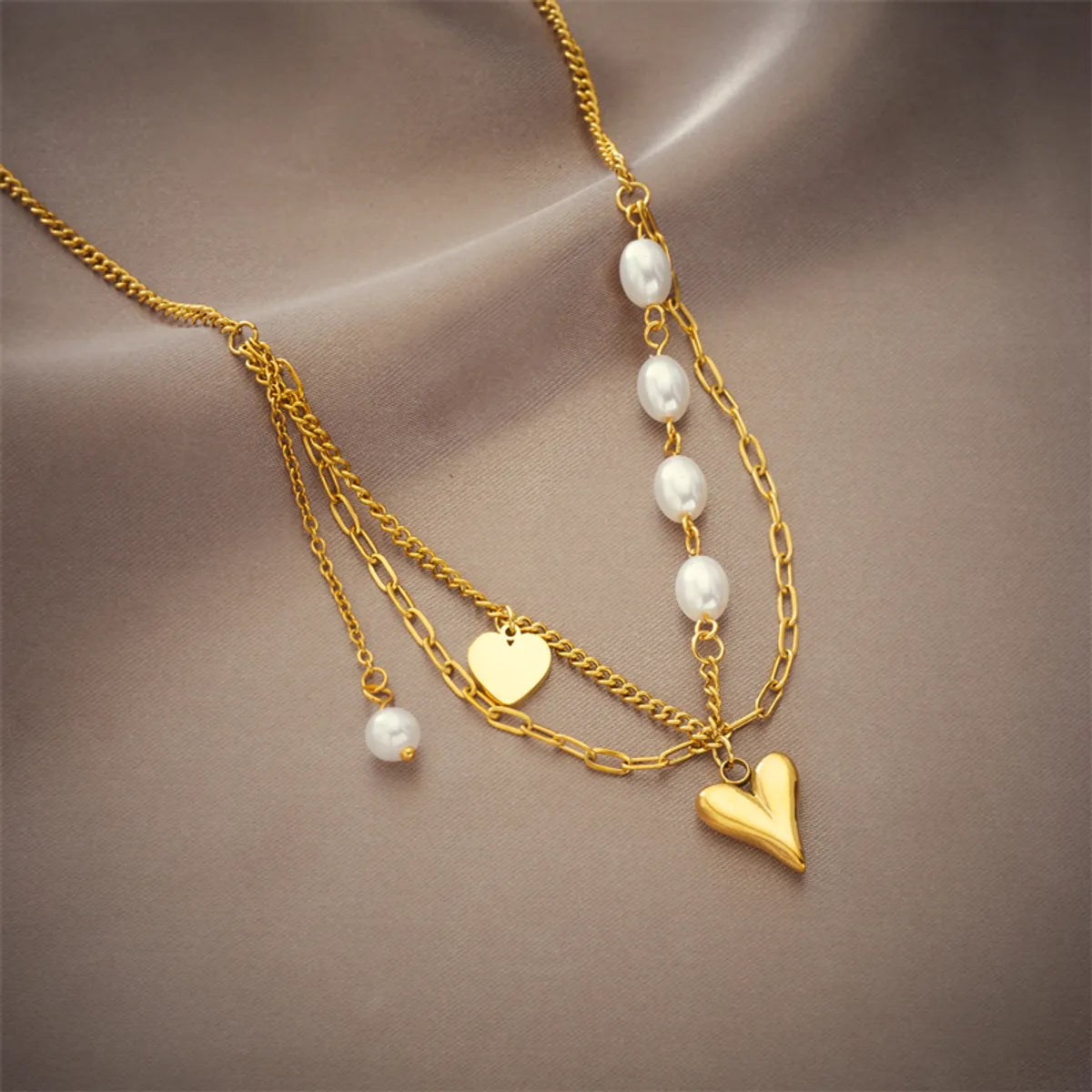 Simple Style Heart Shape Titanium Steel Patchwork 18k Gold Plated Necklace