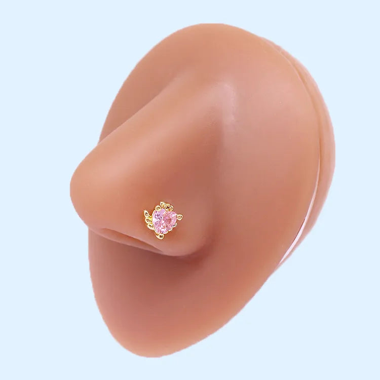 Simple Style Star Graffiti Flame Stainless Steel Epoxy Plating Inlay Artificial Rhinestones Zircon White Gold Plated Gold Plated Nose Studs