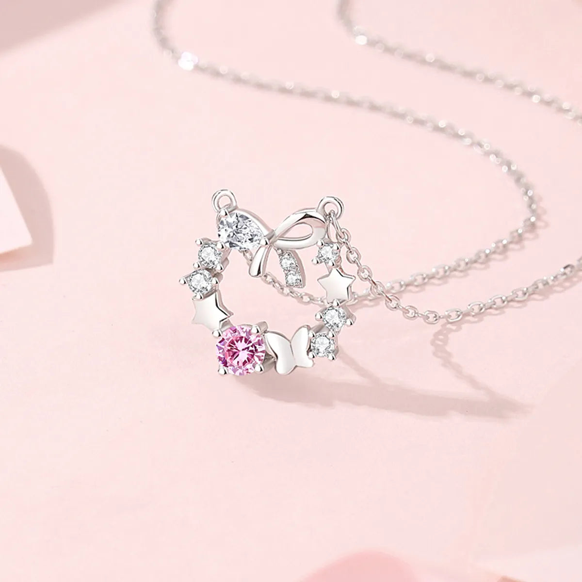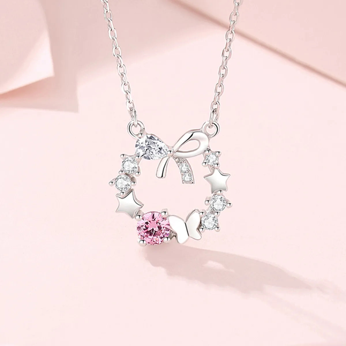 Simple Style Wreath Bow Knot Sterling Silver Pendant Necklace