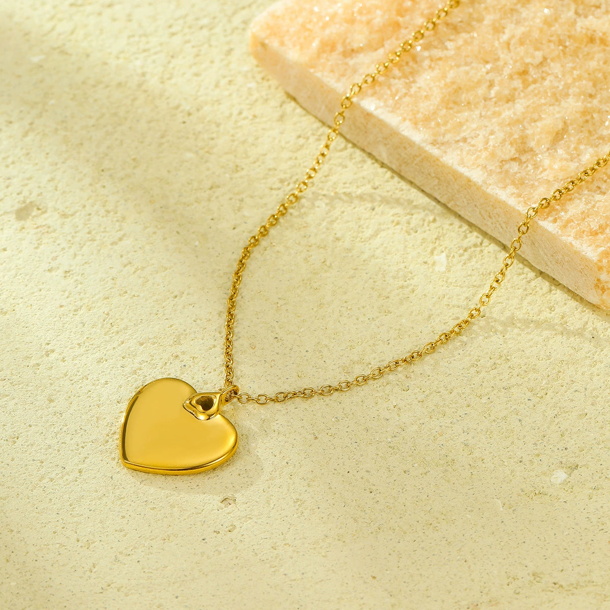 Stainless Steel Heart Shape Fashion Clavicle Chain Pendant Necklace With Electroplating