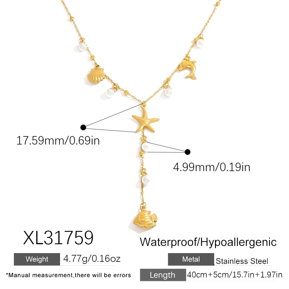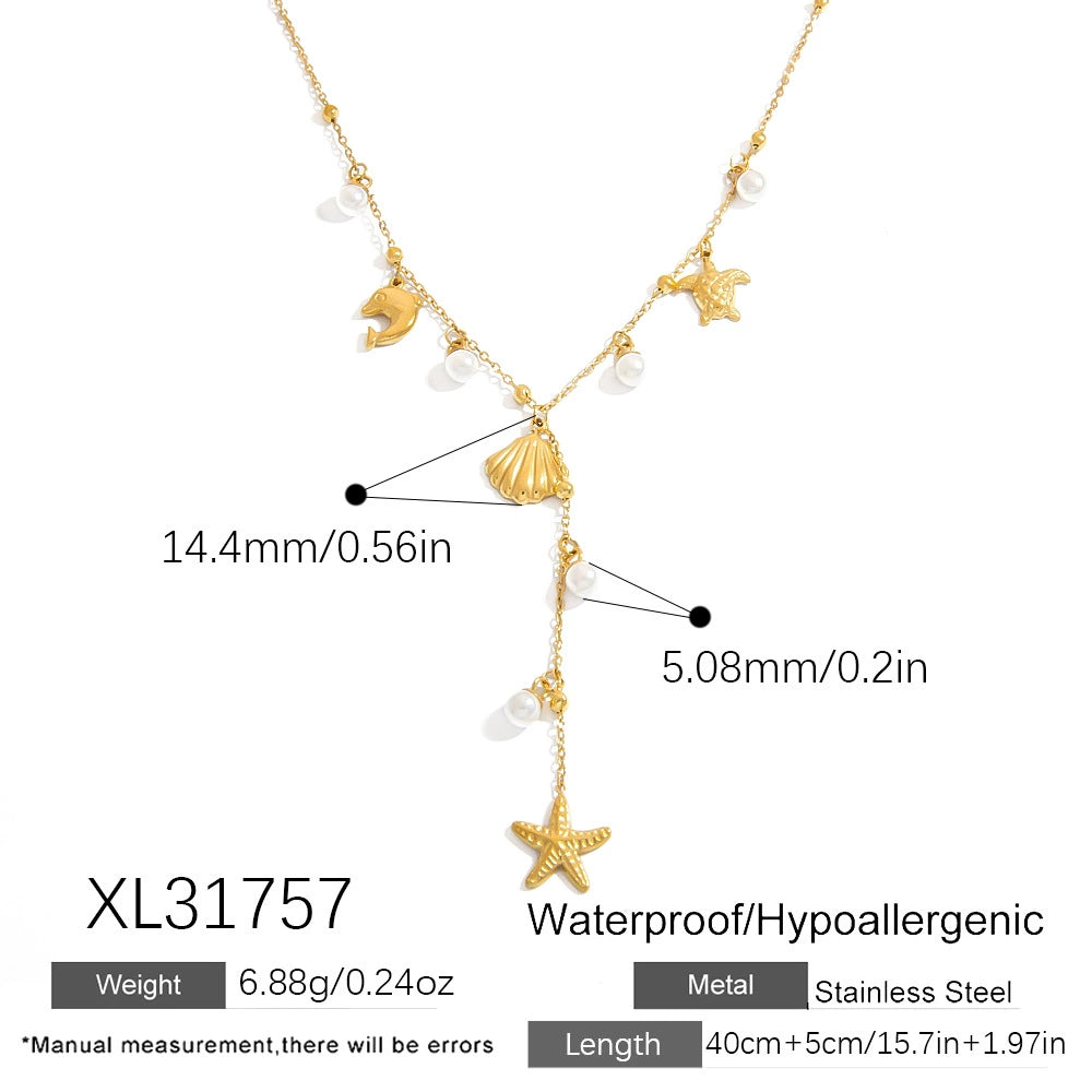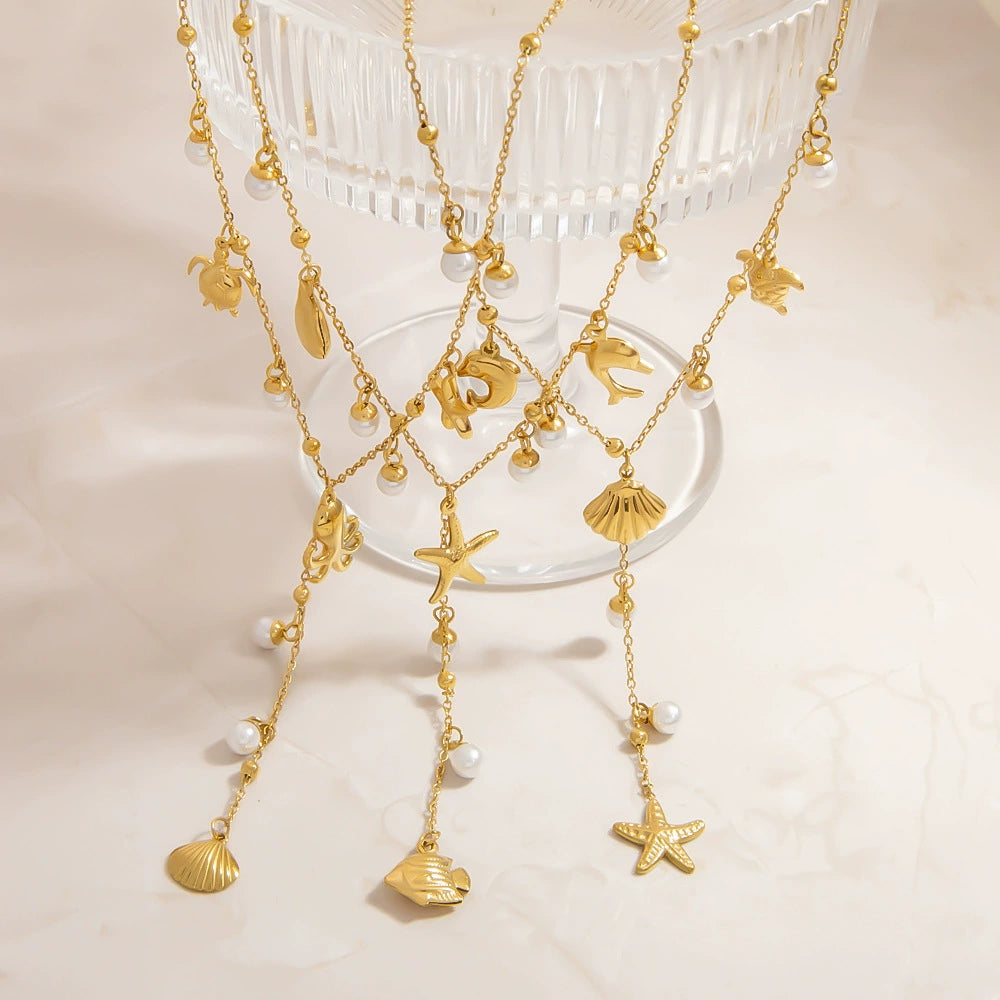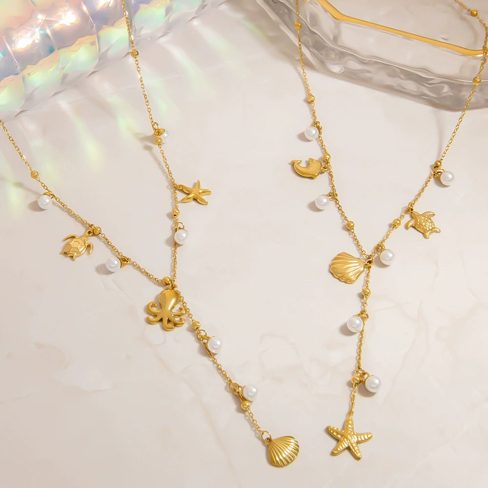 Stainless Steel Necklace Yshaped Bead Chain Light Luxury Style With Star Animal Zodiac Pattern Electroplated For Women