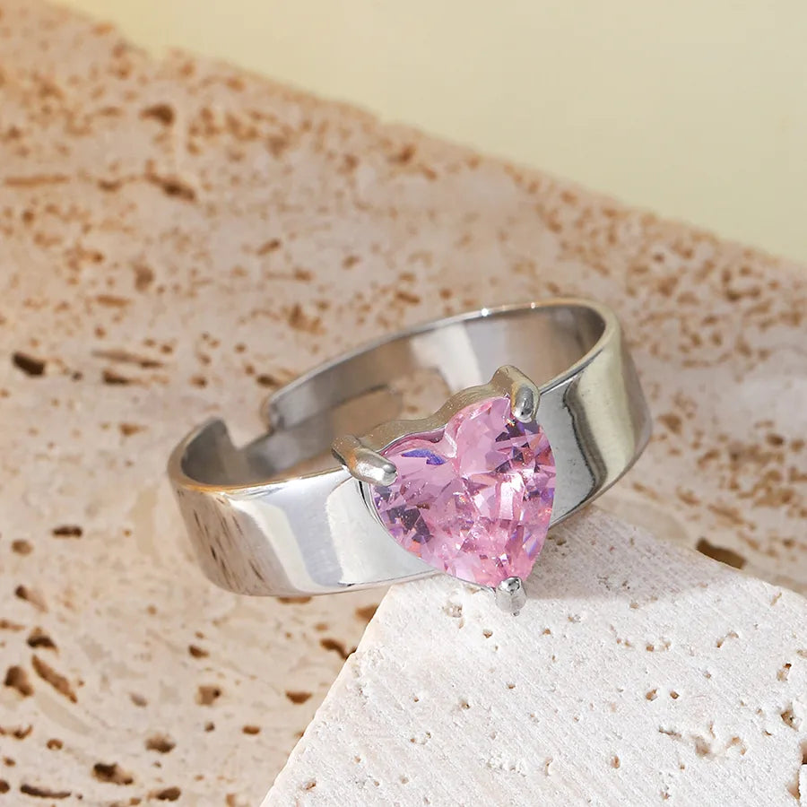 Stainless Steel None Sweet Simple Style Inlay Heart Shape Zircon Open Rings