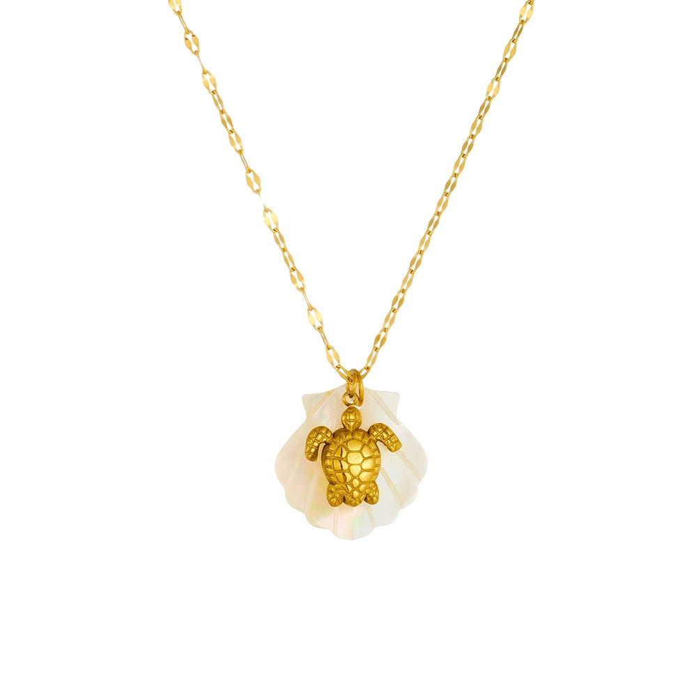 Stainless Steel Pendant Necklace Beach Ocean Style Gold Plated With Starfish Conch Shell Turtle Animal Zodiac Design