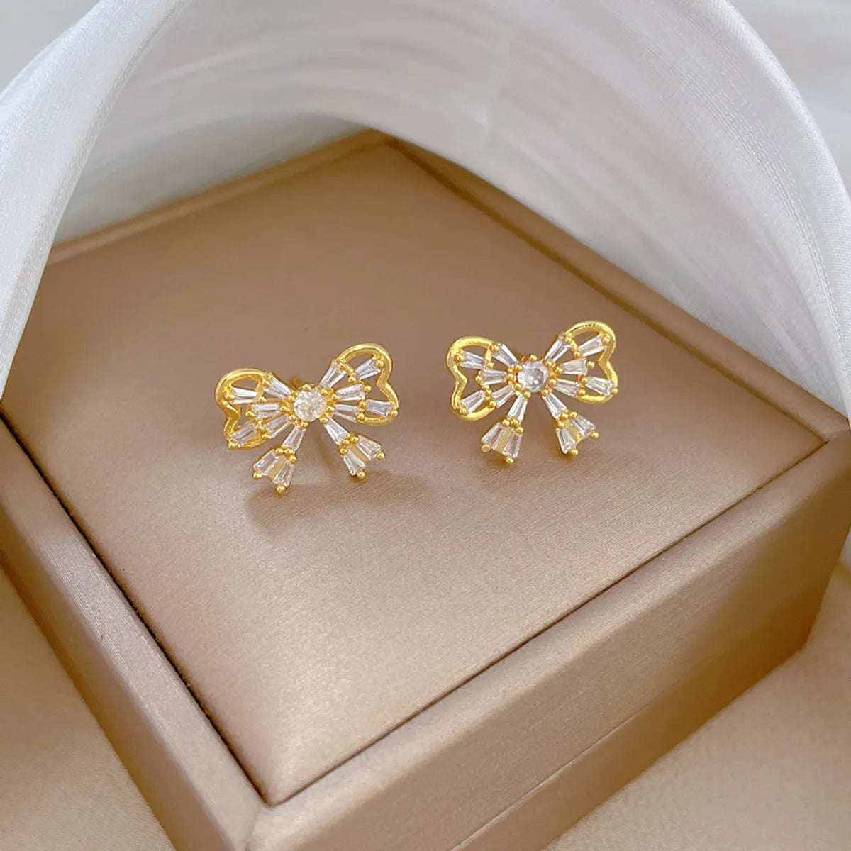 Sweet Bow Knot Titanium Steel Plating Inlay Zircon Earrings Necklace