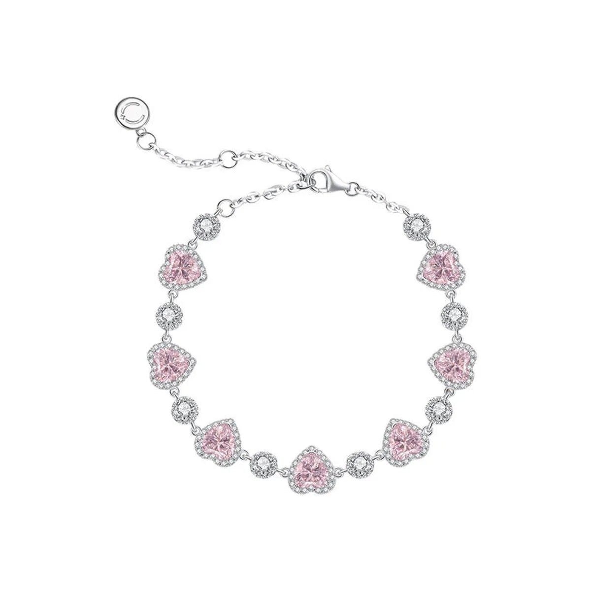Sweet Heart Shape Sterling Silver White Gold Plated Zircon Bracelets In Bulk