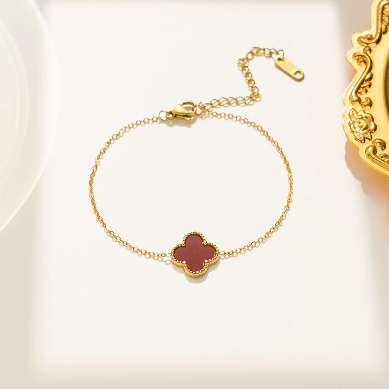 Titanium Steel Geometric Fourleaf Clover Bracelet Electroplated Light Luxury Women's Summer Fashion Accessory