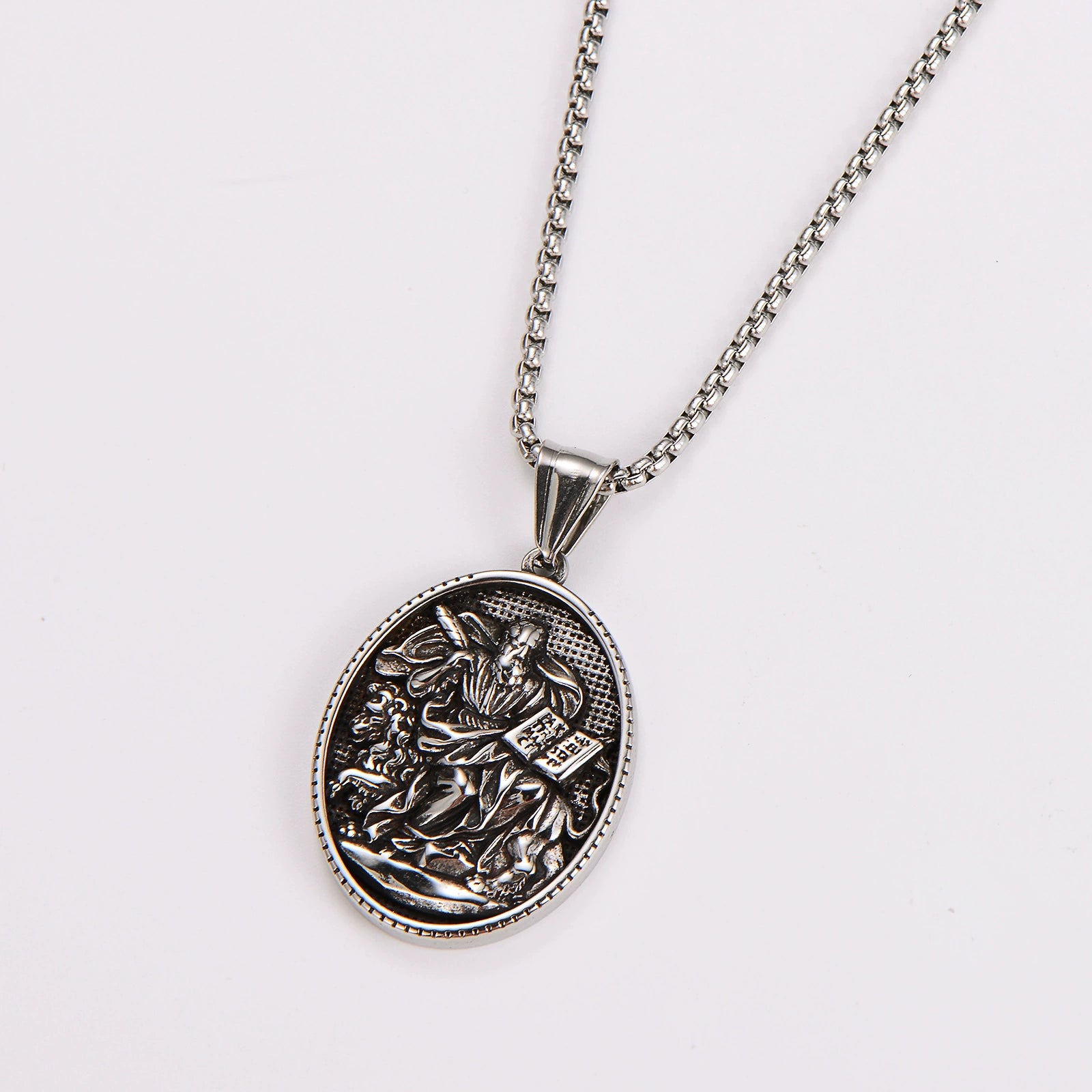 Trendy Cool Powder Casted Geometric Personality Design St Mark's Book Pendant Necklace
