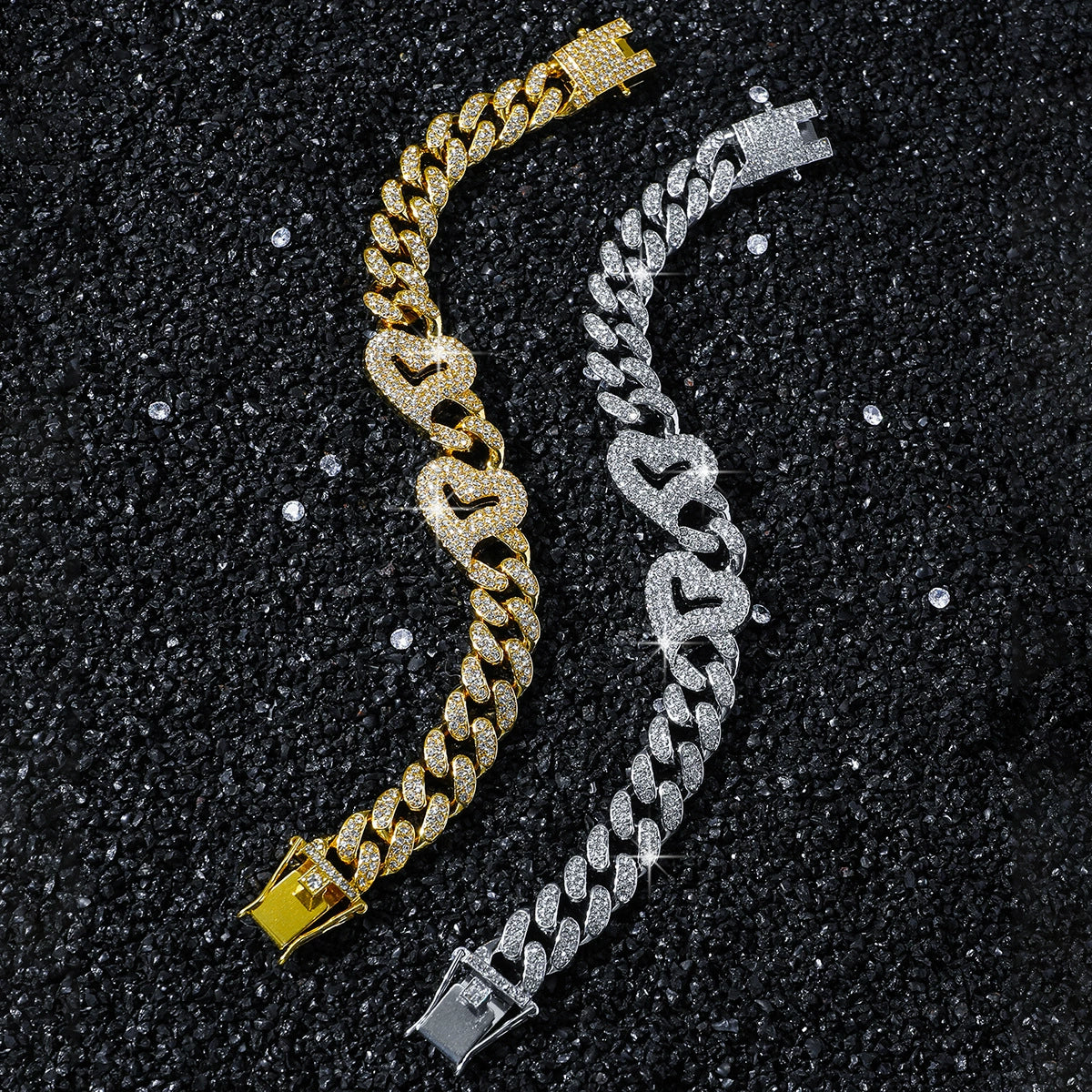 Unisex Hiphop Style Alloy Chain Bracelet With Love Stitching And Geometric Pattern Electroplated