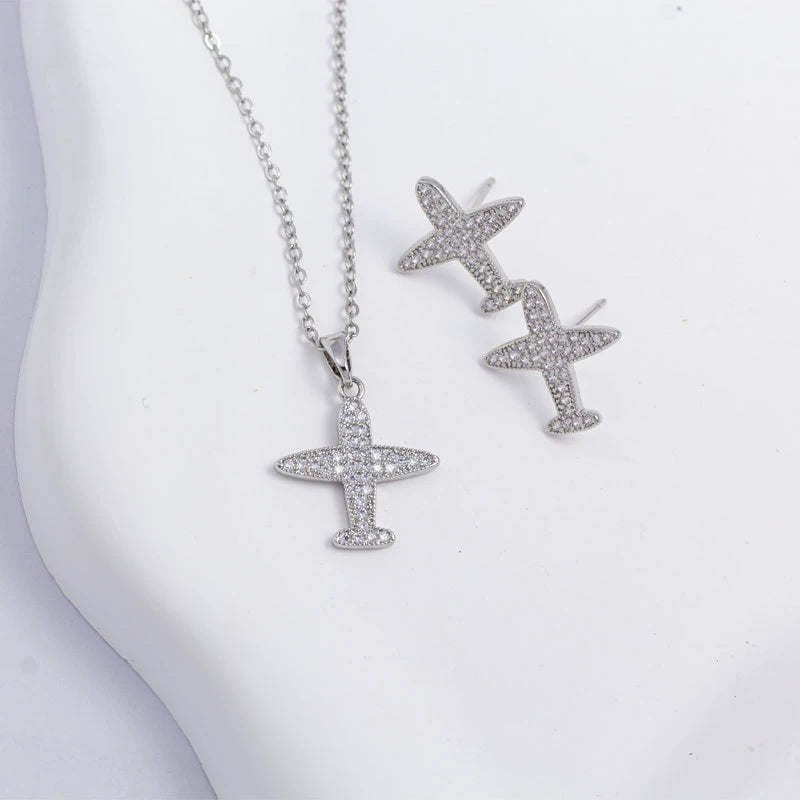 Unisex Simple Fashion Jewelry Copper Airplane Shape Pendant Necklace With Electroplating And Mixed Gemstone Setting