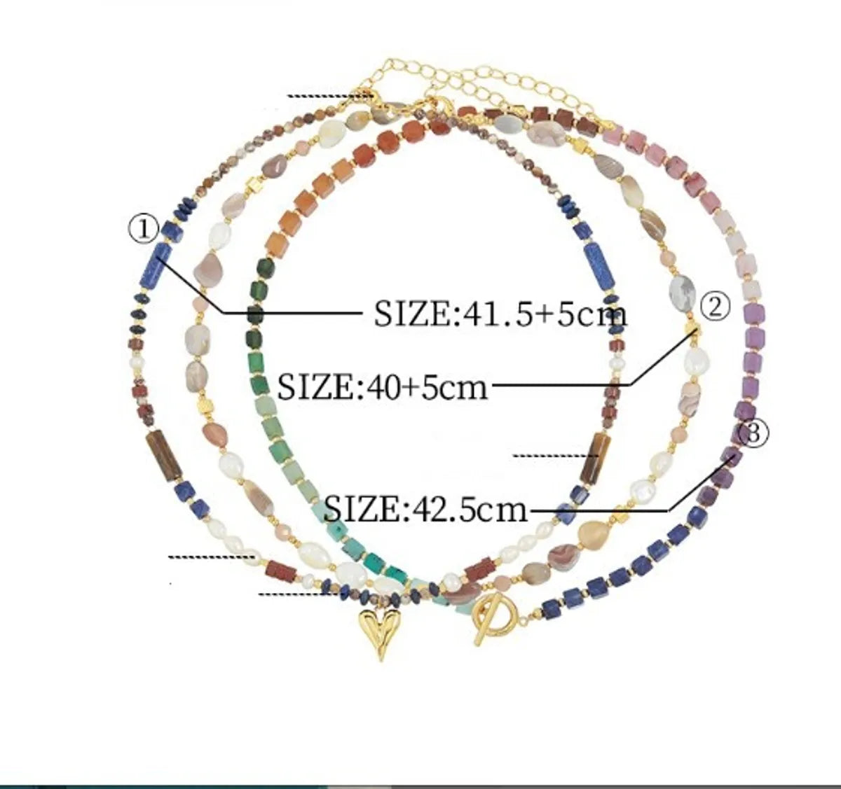 Vacation Geometric Color Block Heart Shape Natural Stone Freshwater Pearl Copper Pendant Necklace In Bulk