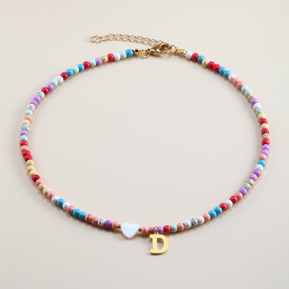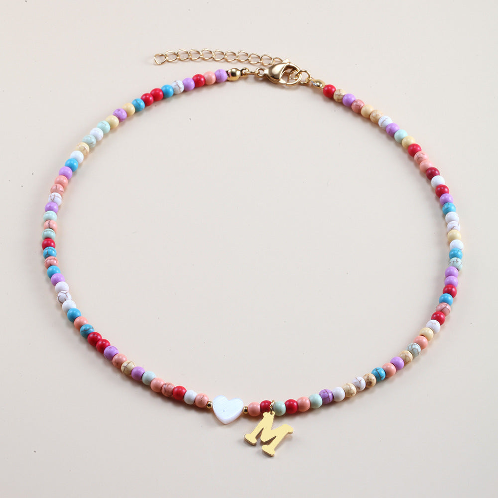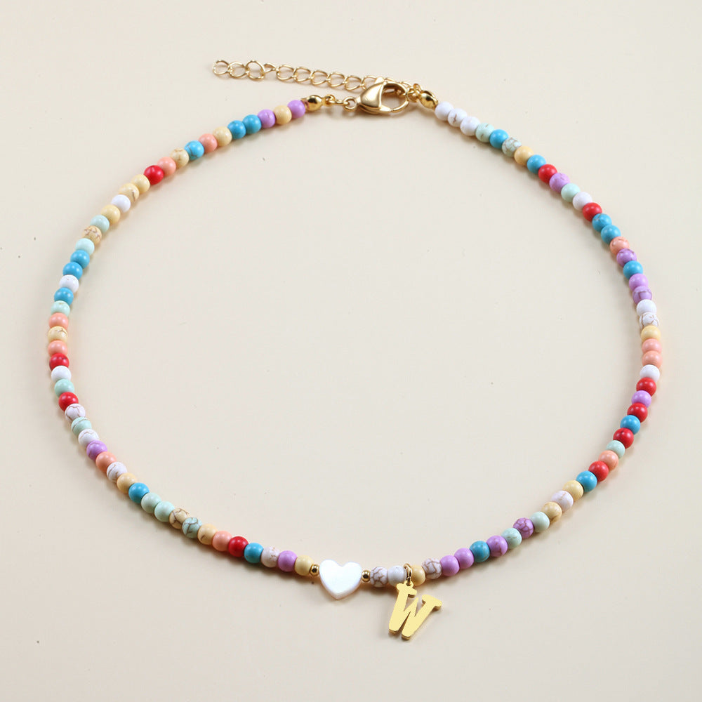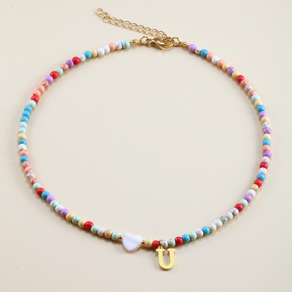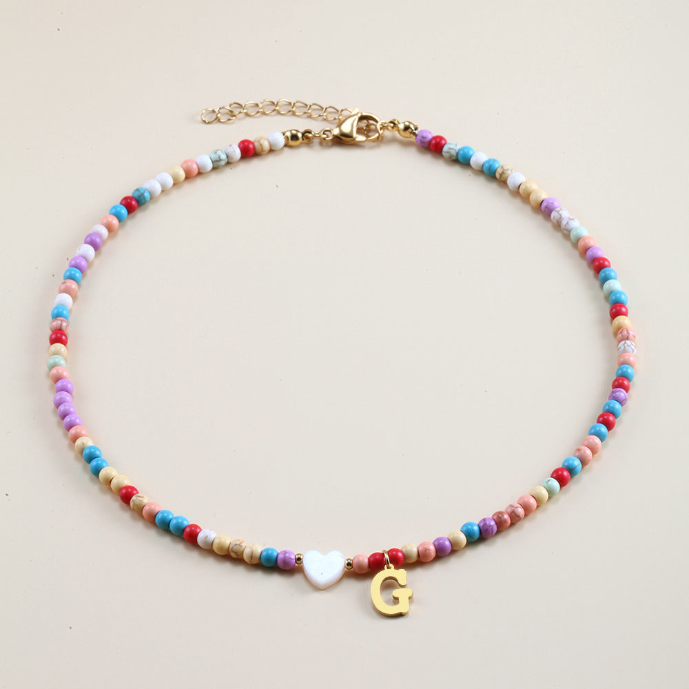 Vacation Letter Heart Shape Stainless Steel Natural Stone Handmade Necklace