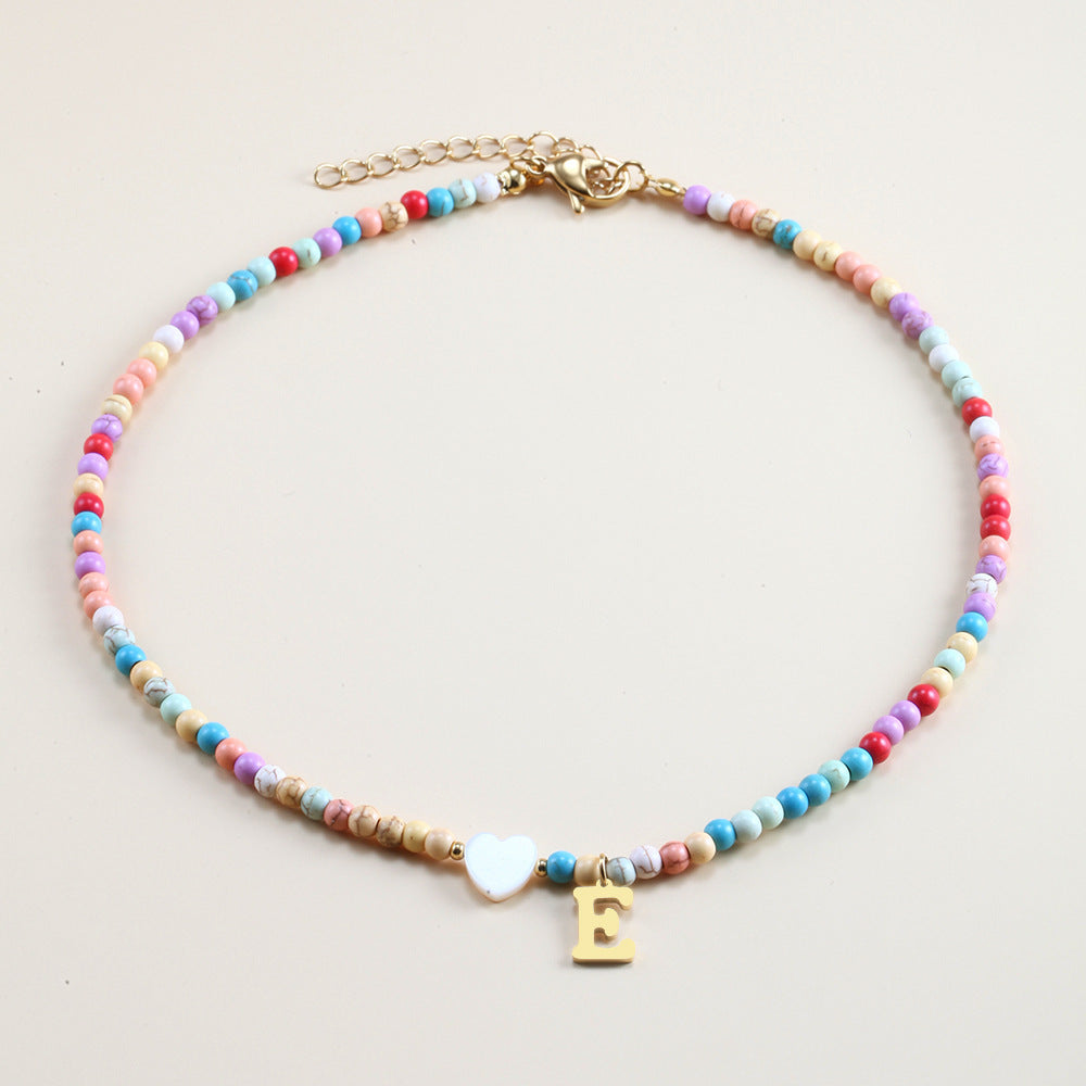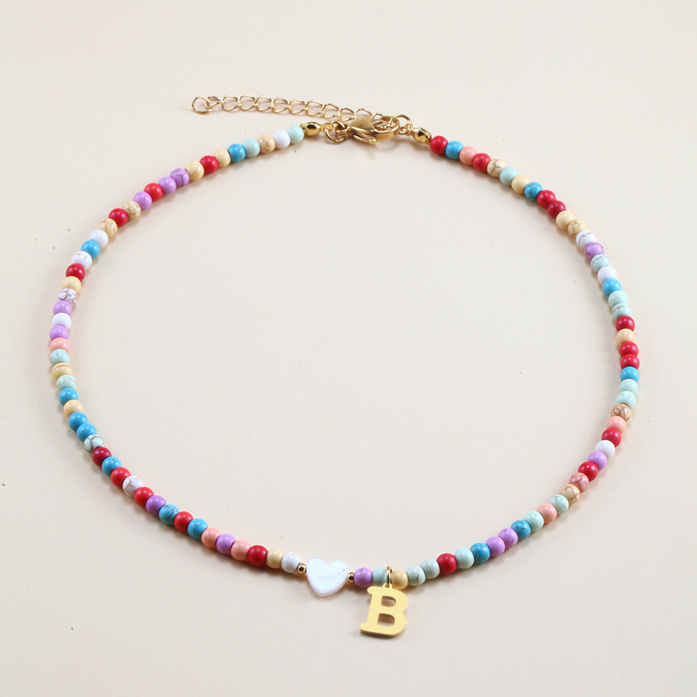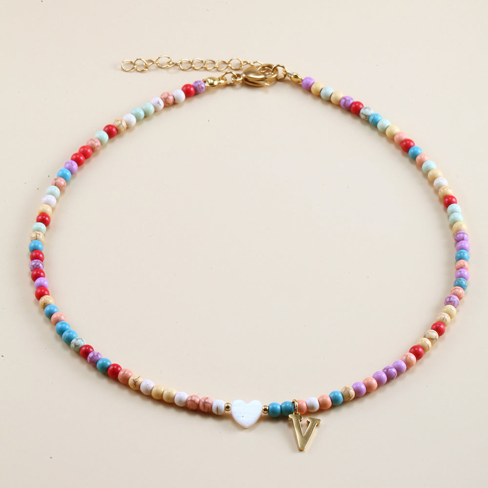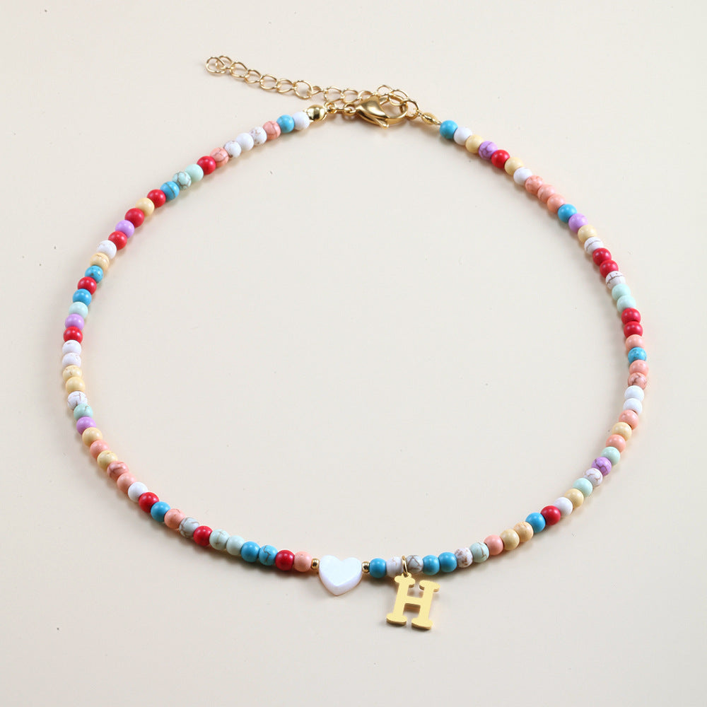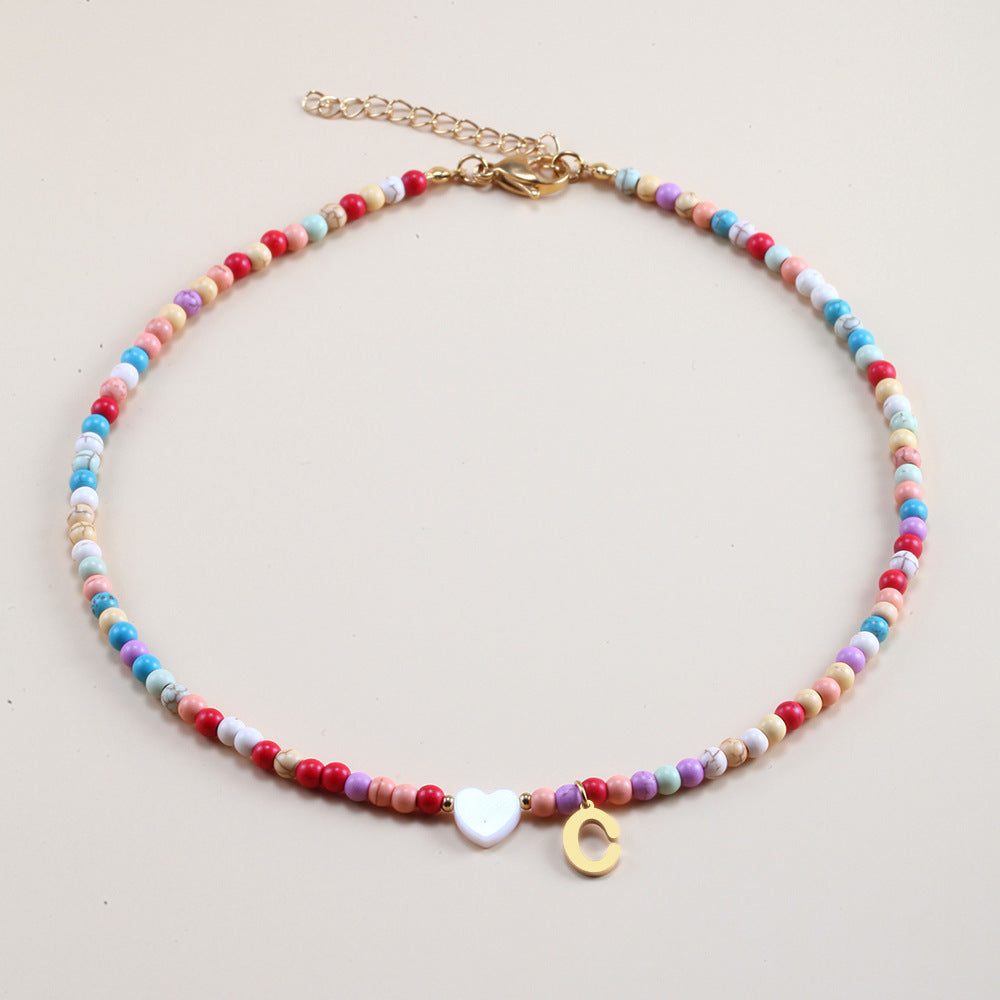 Vacation Letter Heart Shape Stainless Steel Natural Stone Handmade Necklace