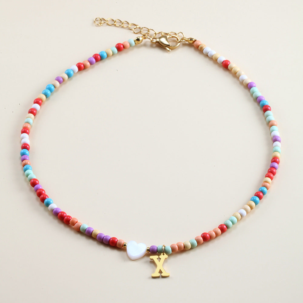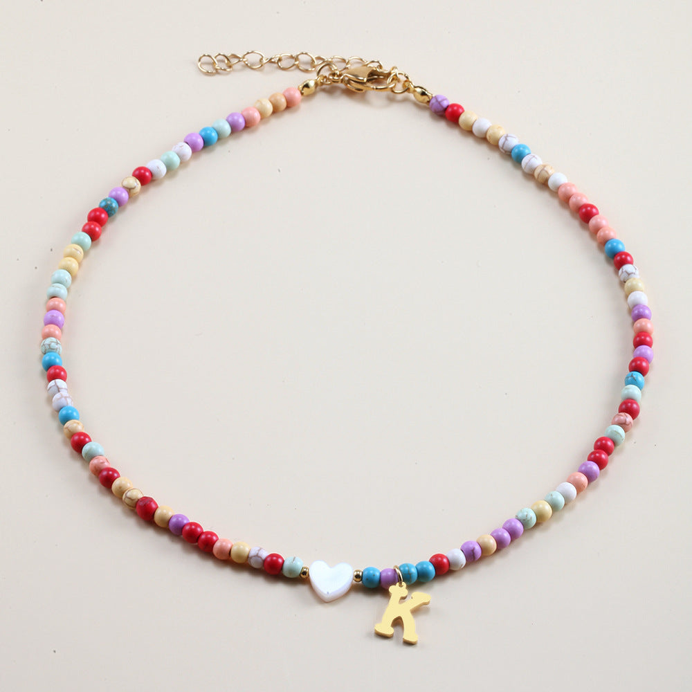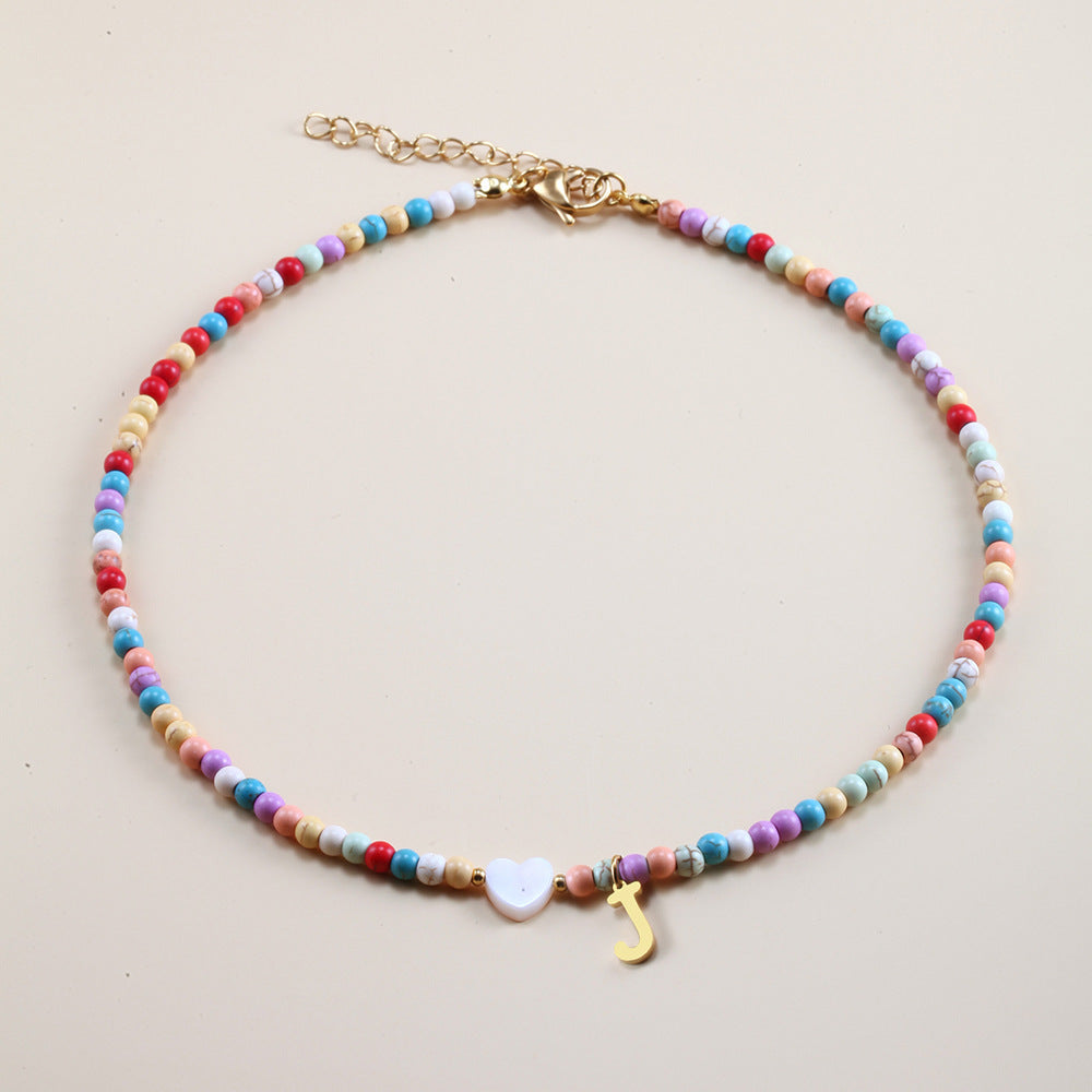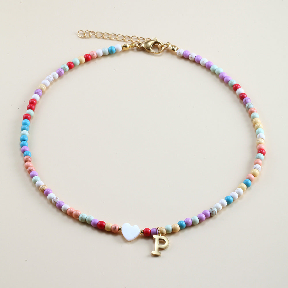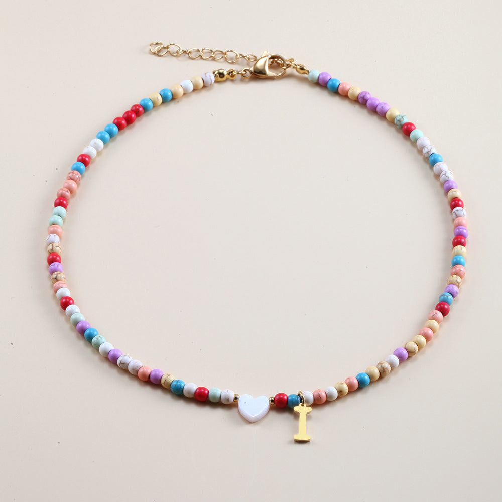 Vacation Letter Heart Shape Stainless Steel Natural Stone Handmade Necklace