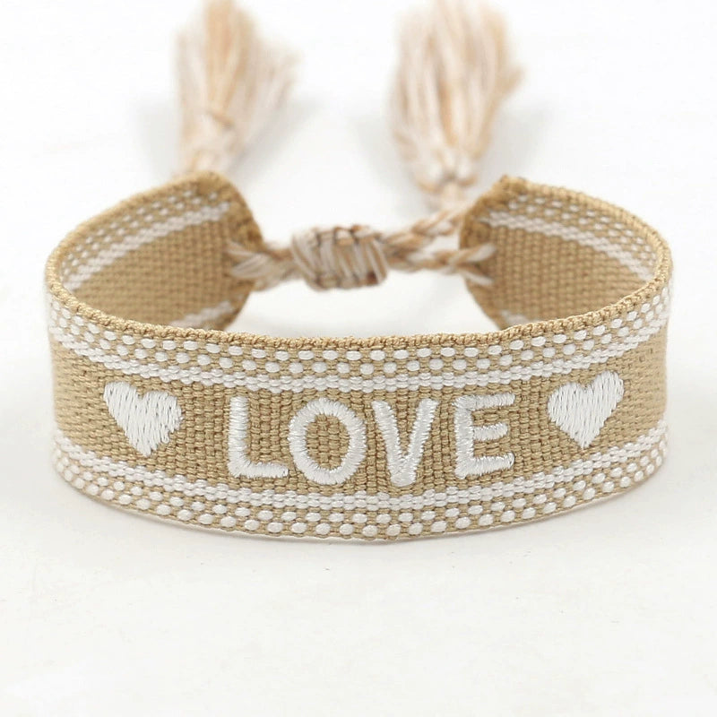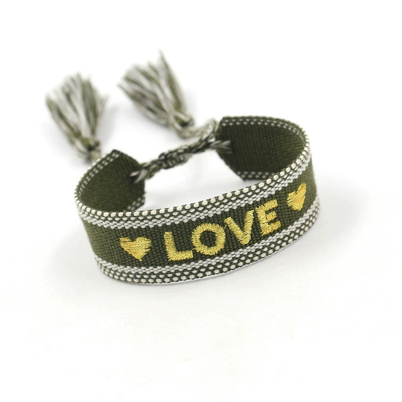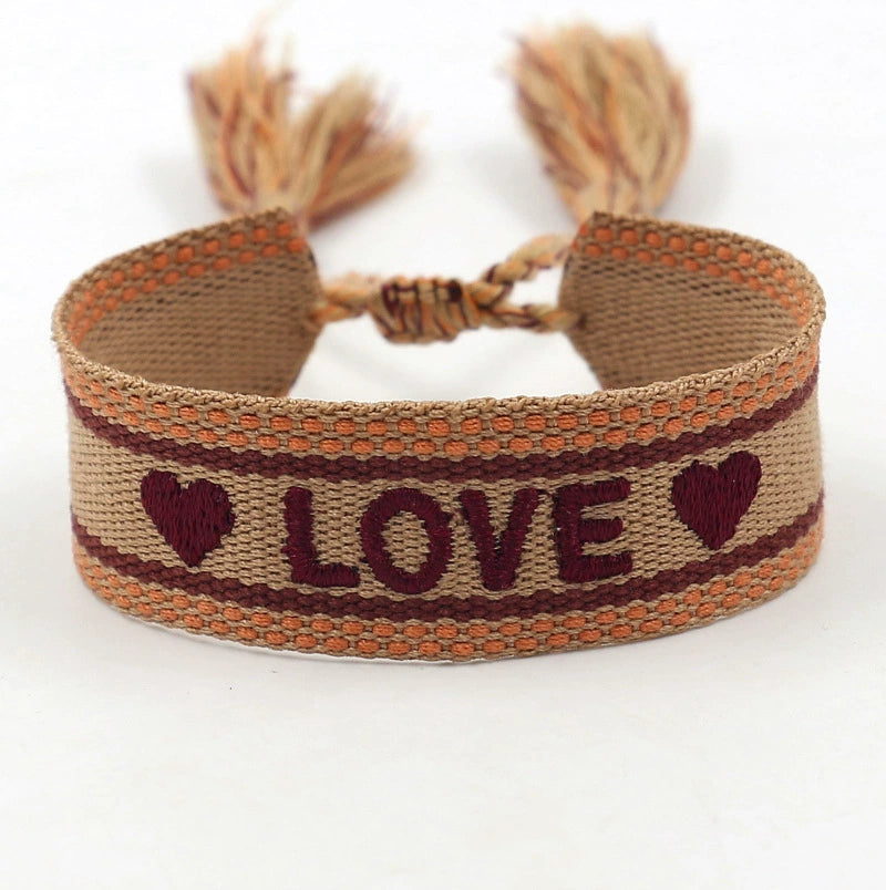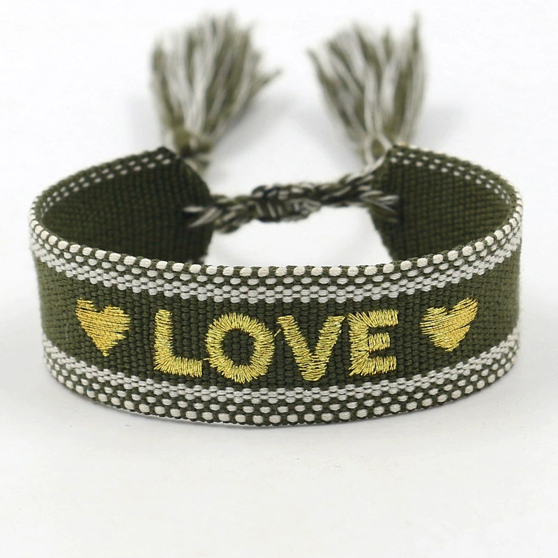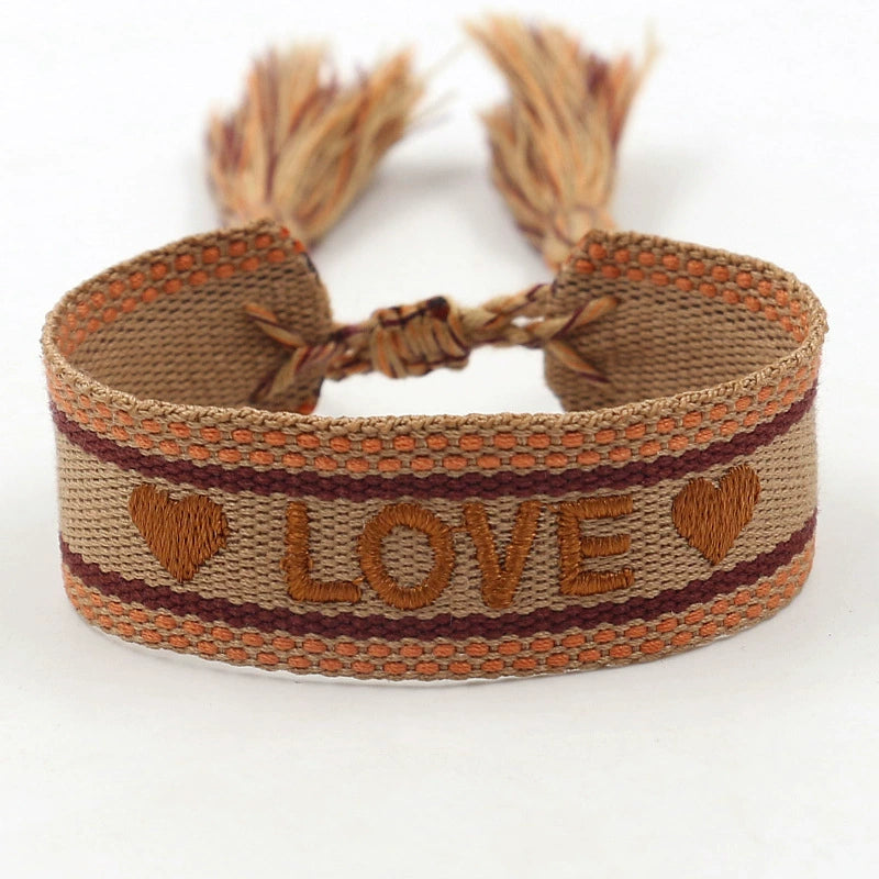 Wholesale Accessories Gold Thread Embroidered Love Letter Wrist Strap Handwoven Tassel Bracelet