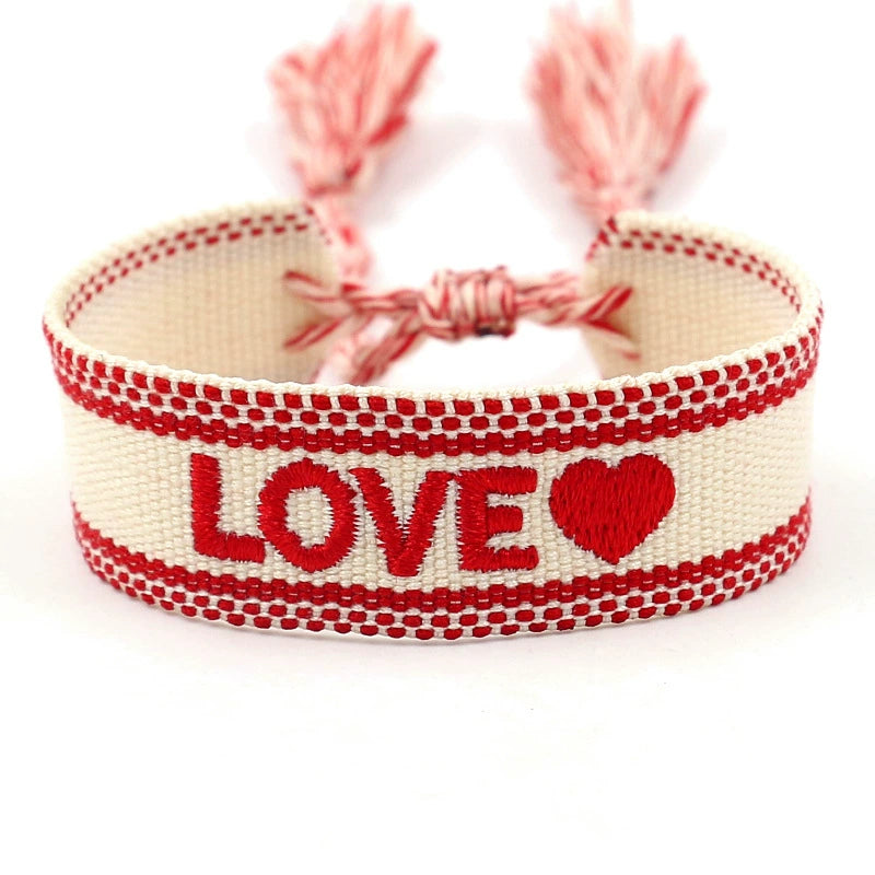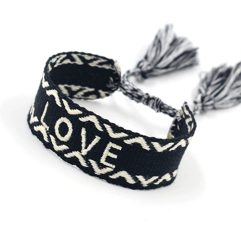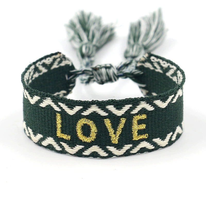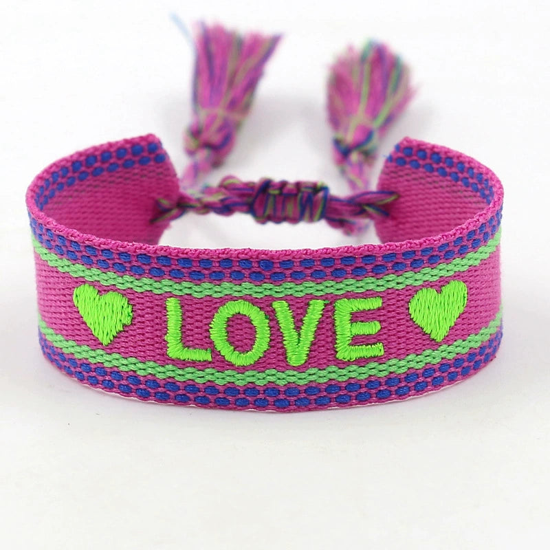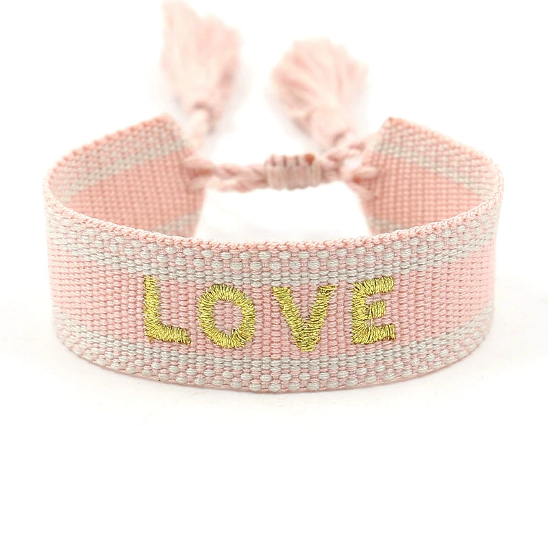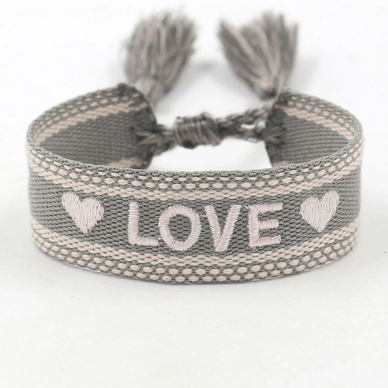 Wholesale Accessories Gold Thread Embroidered Love Letter Wrist Strap Handwoven Tassel Bracelet
