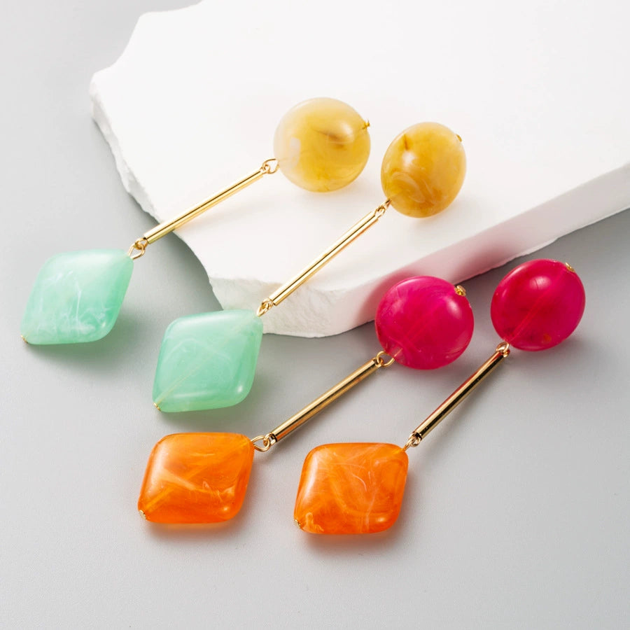 Wholesale Alloy Resin Geometric Round Diamond Women's Elegant Earrings