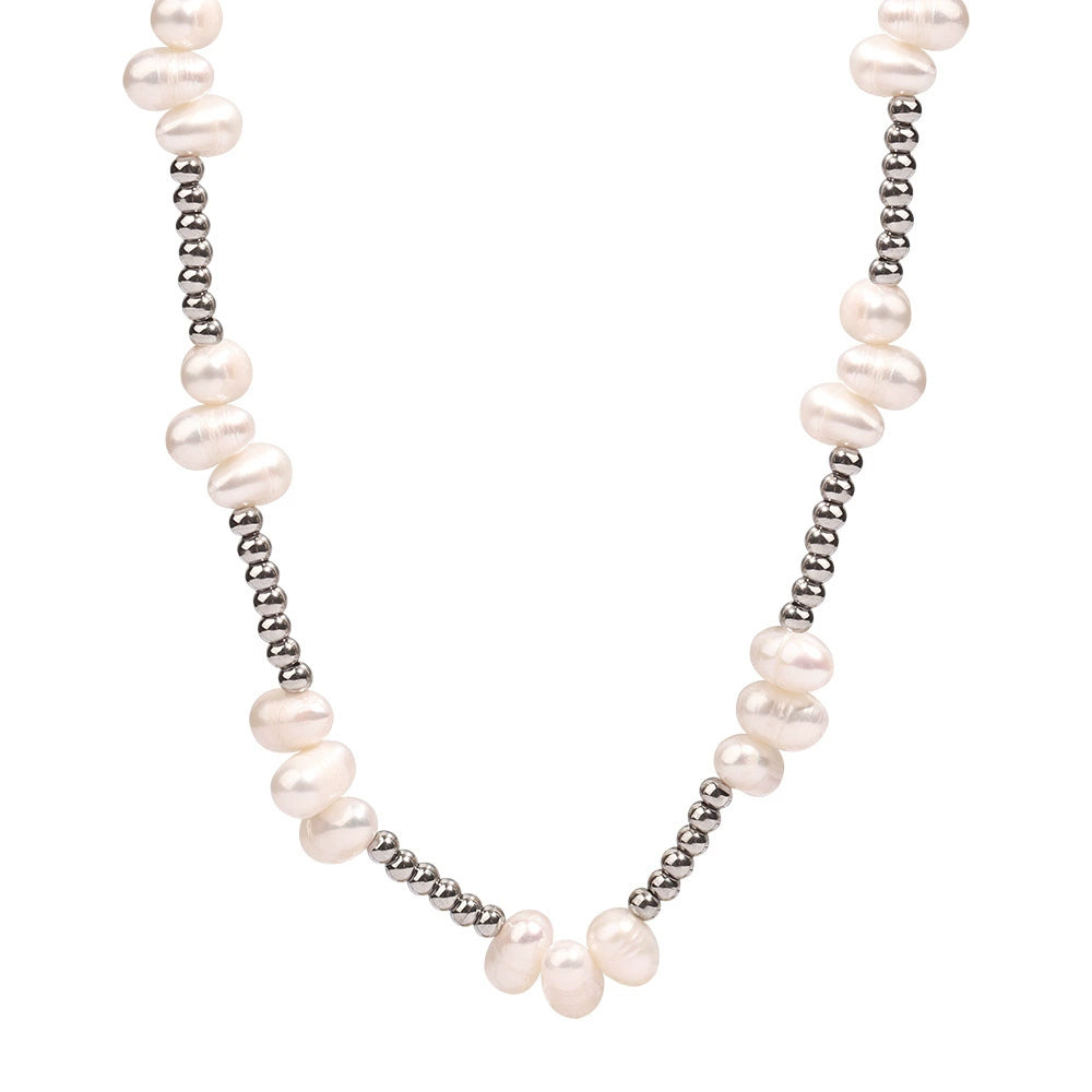 Wholesale Beaded Necklace Handmade With Freshwater Pearl And Titanium Steel Beads Geometric Style