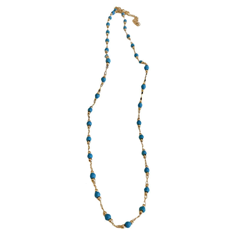 Wholesale Bohemian Style Retro Light Luxury Clavicle Chain Necklace With Artificial Stone Beads Real Gold Electroplated And Handmade Mixed Materials Geometric Shape