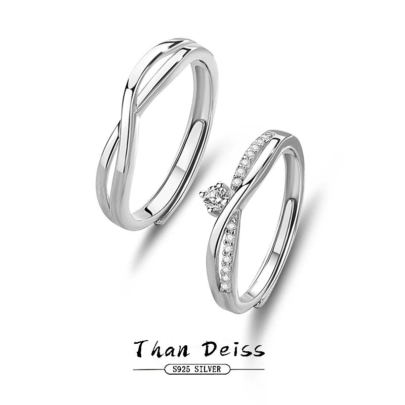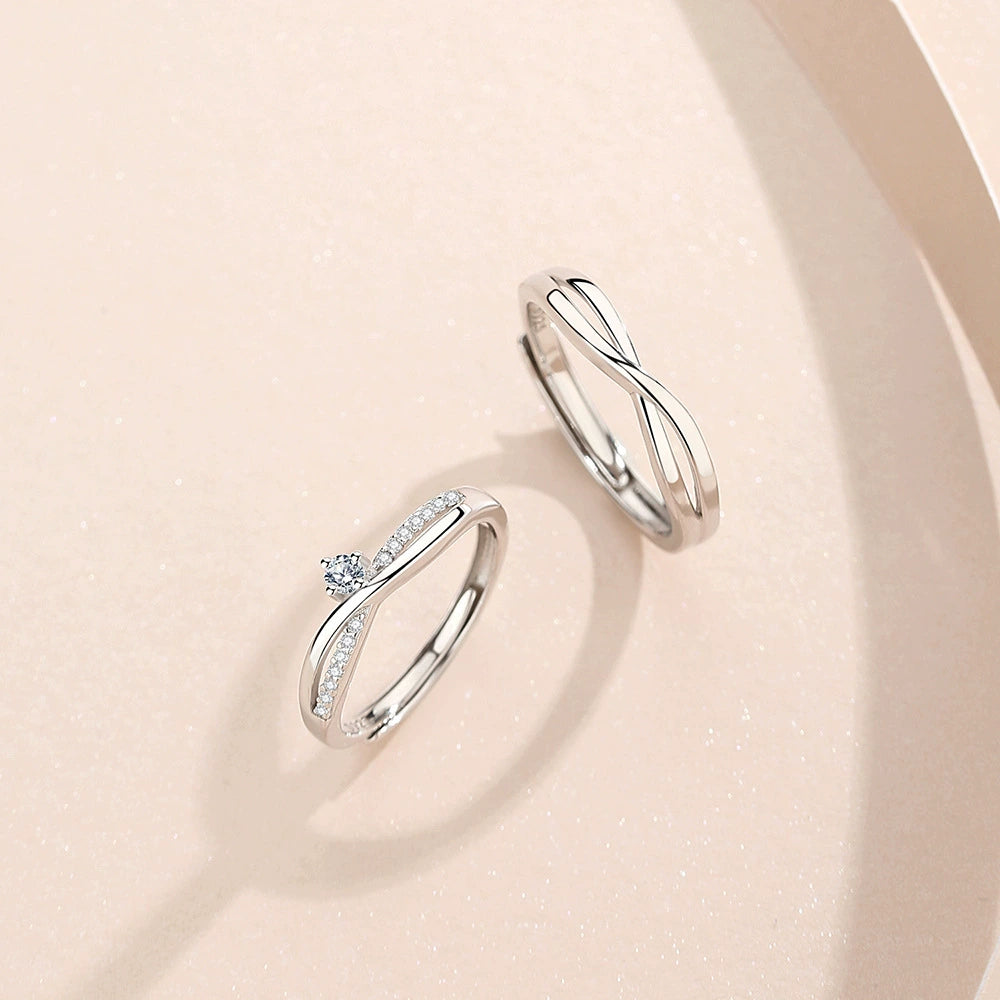 Wholesale Couple Ring 925 Sterling Silver Geometric Mobius Adjustable Open Plain Ring