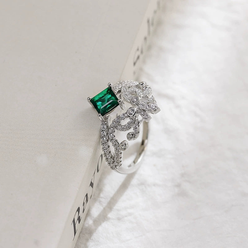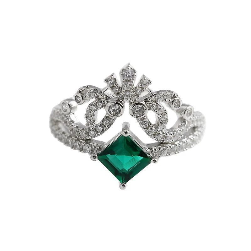 Wholesale Cultured Emerald And Diamond Set Crownshaped S925 Silver Ring For Women