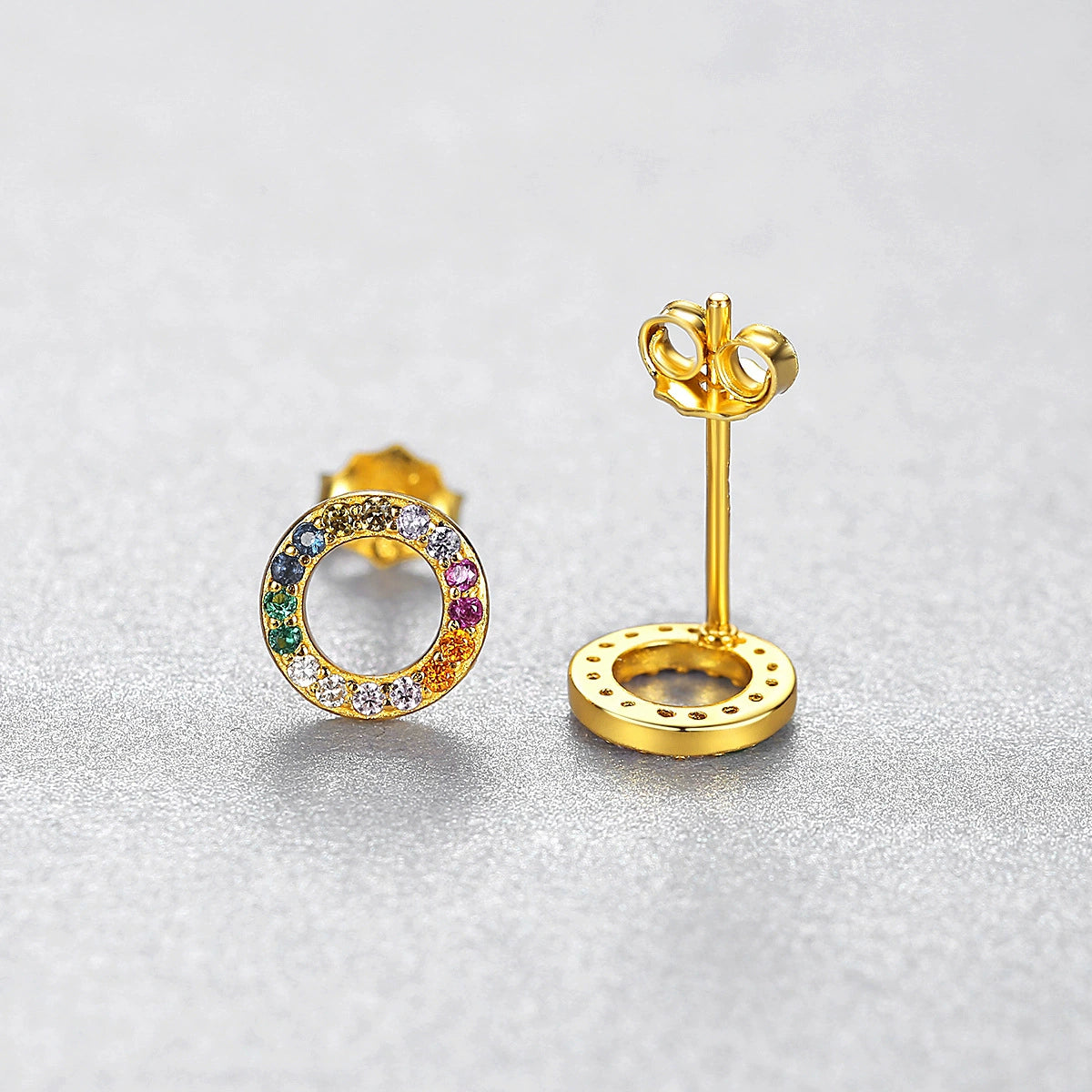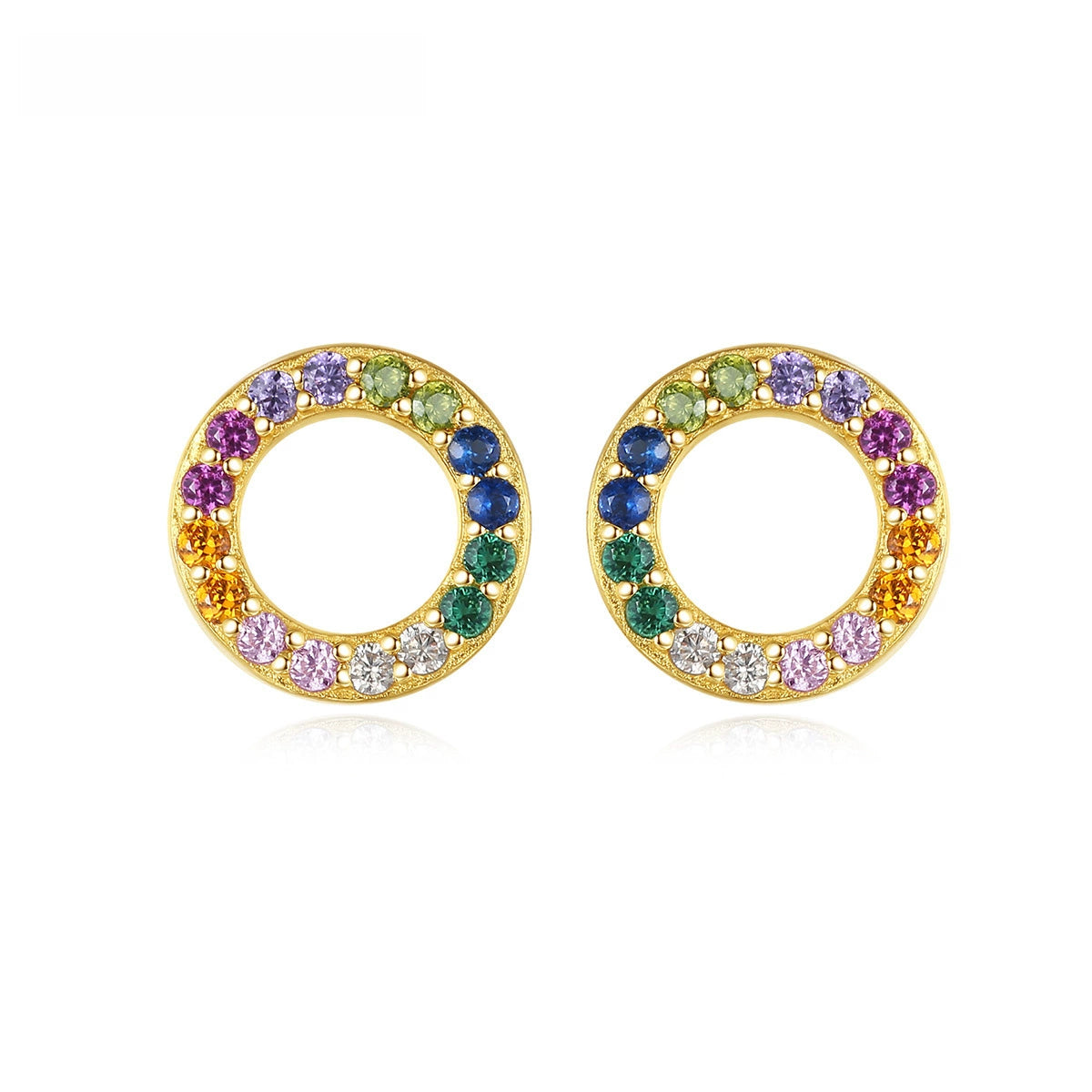 Wholesale Geometric Rainbow Circle Zircon Colorful Earrings Made Of S925 Silver With Electroplating