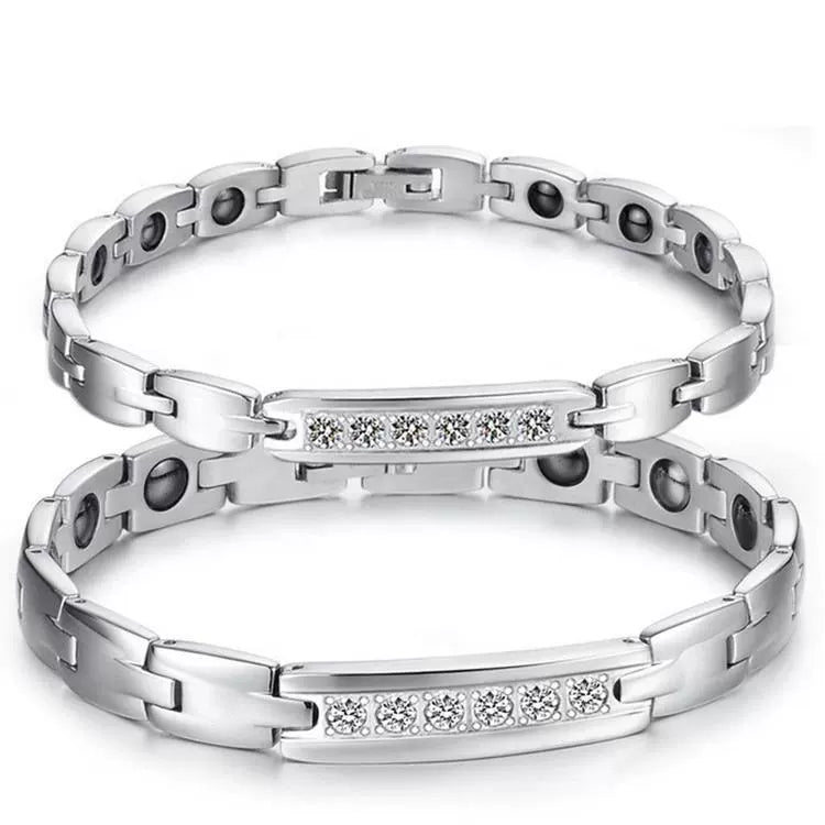 Wholesale Jewelry Magnetic Couple Titanium Steel Bracelet With Geometric Pattern And Diamonds