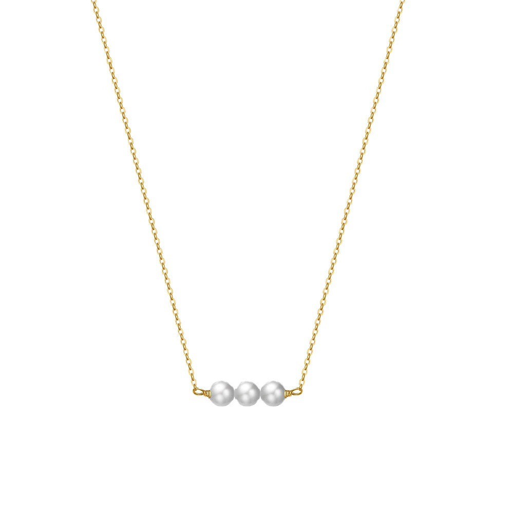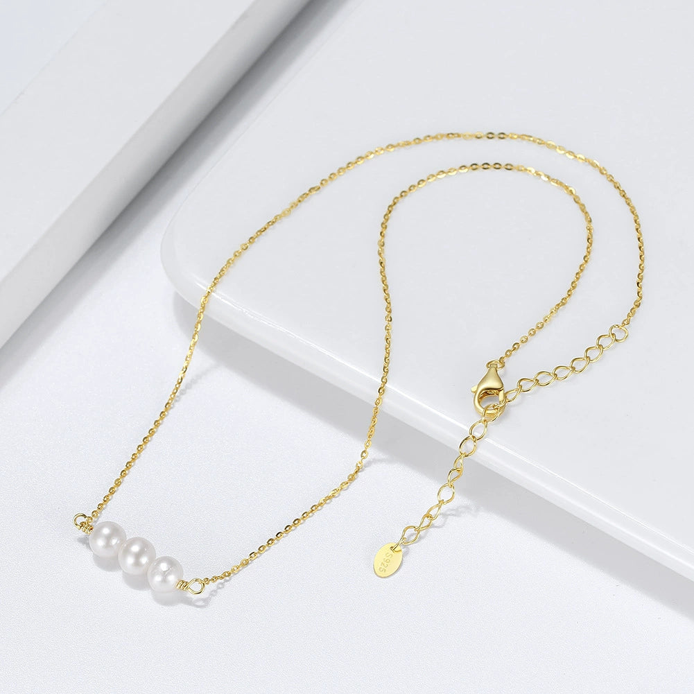 Wholesale Jewelry Natural Style S925 Sterling Silver Necklace With Freshwater Pearl And Geometric Pendant Electroplated
