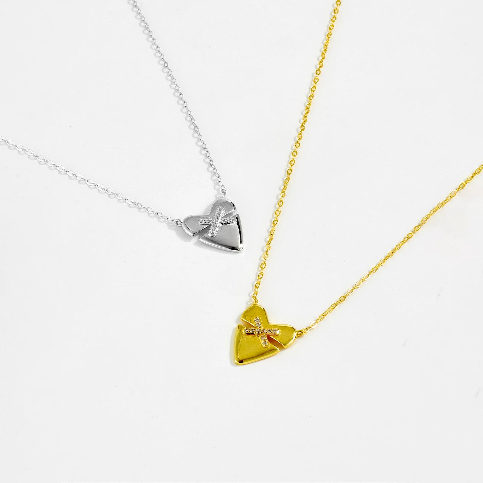 Wholesale Jewelry Silver Geometric Cross Pendant Necklace Electroplated With Platinum And 18K Gold