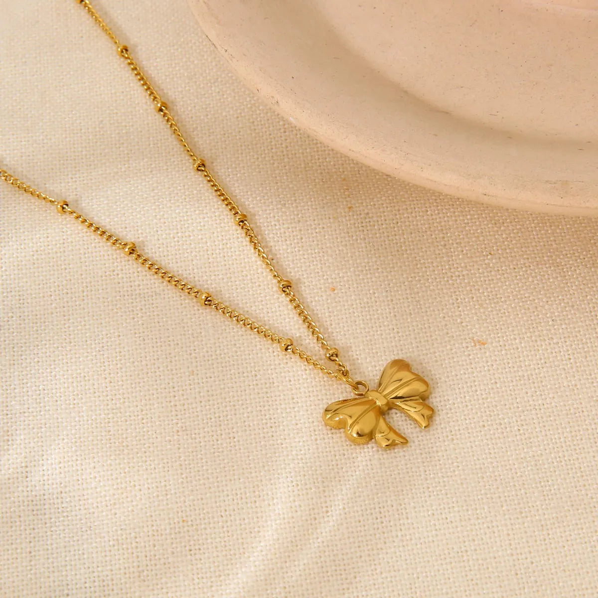 Wholesale Jewelry Simple Style Classic Style Bow Knot 304 Stainless Steel Zircon Inlay Pendant Necklace