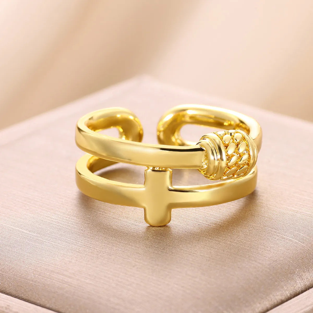 Wholesale Jewelry Simple Style Classic Style Solid Color 304 Stainless Steel Gold Plated Plating Rings
