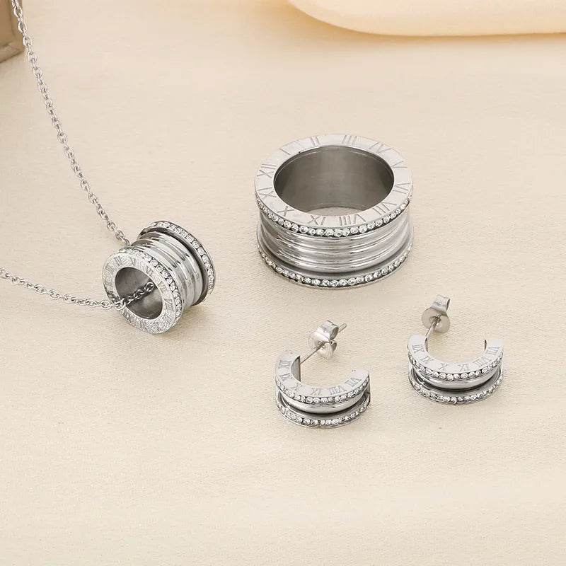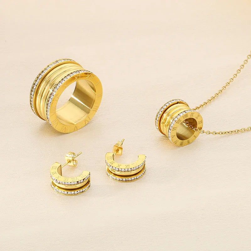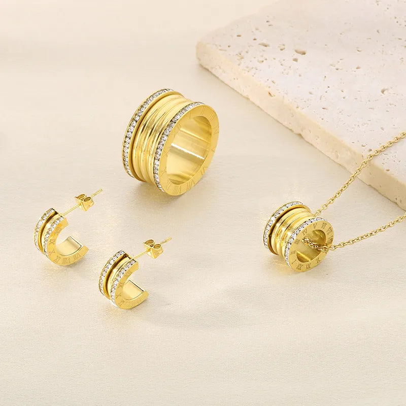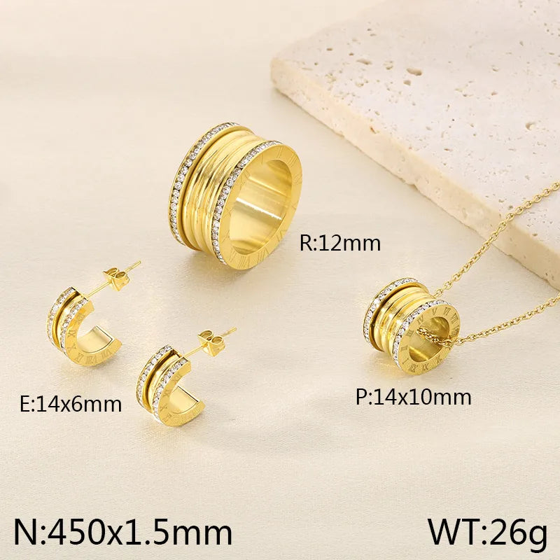 Wholesale Jewelry Simple Style Small Waist 304 Stainless Steel 18K Gold Plated Rings Earrings Necklace